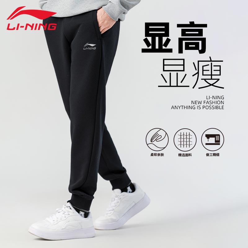 李宁运动裤男秋冬新款束脚裤子休闲针织篮球卫裤健身棉质透气长裤