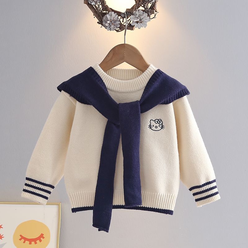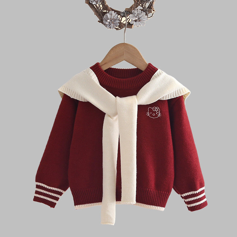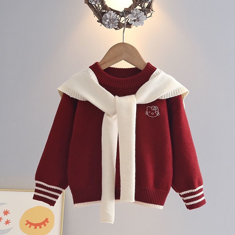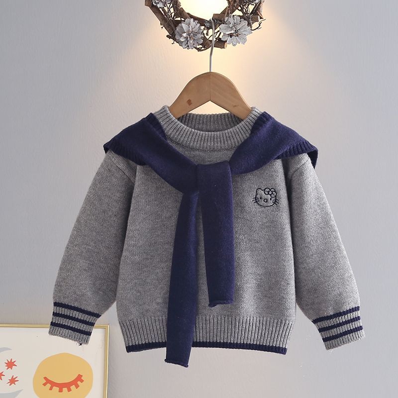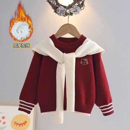 女童披肩毛衣秋冬装2025新款儿童洋气时髦女孩加绒套头打底针织衫