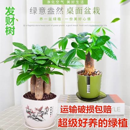 发财树盆栽室内客厅桌面绿植小盆景大发财树苗招财树吸甲醛植物