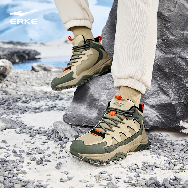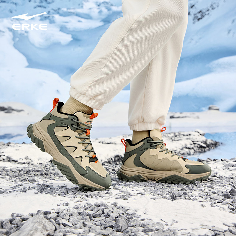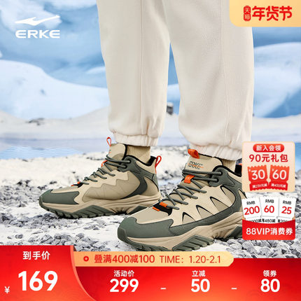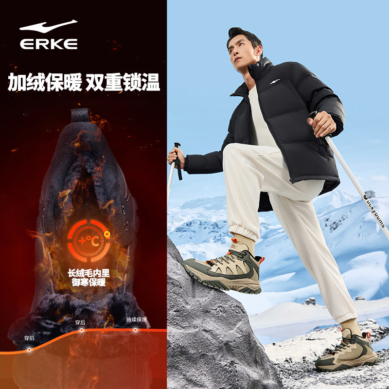 鸿星尔克新款炽野男休闲鞋防滑加厚皮面棉鞋厚底增高中高帮运动鞋