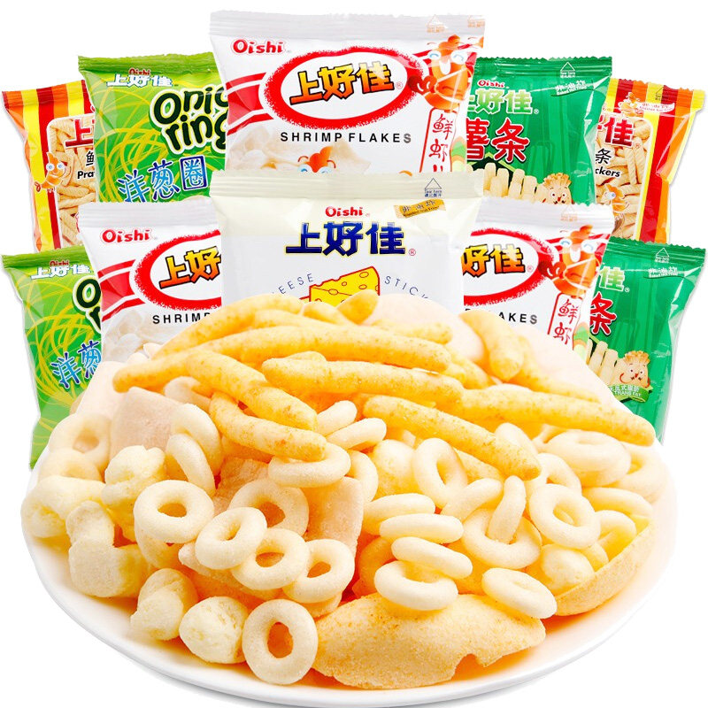 上好佳膨化包装鲜虾洋葱薯片组合