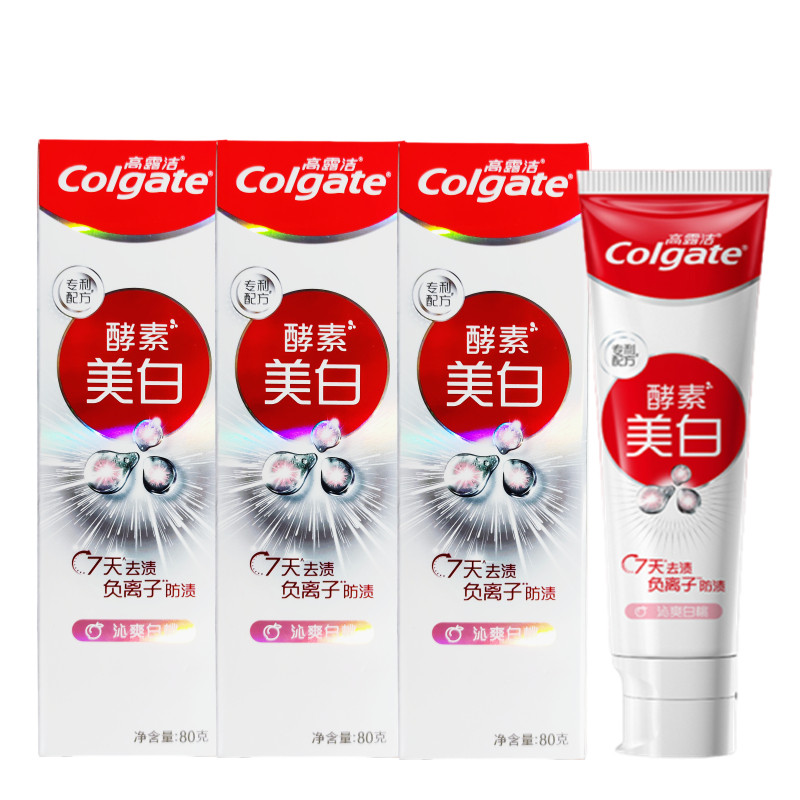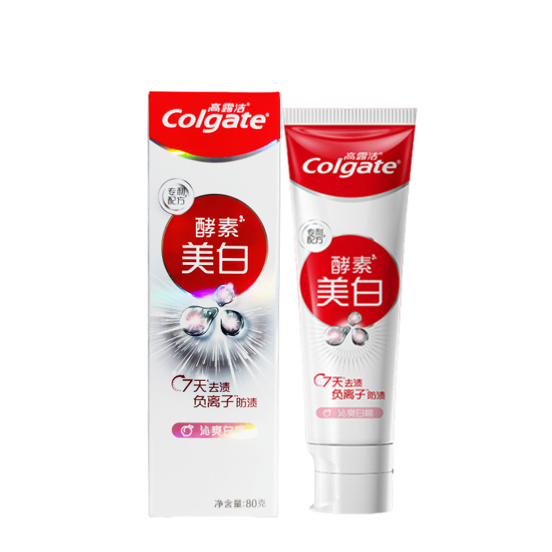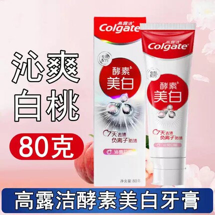 高露洁酵素美白牙膏沁爽白桃味80g中支清新口气家庭学生宿舍军训