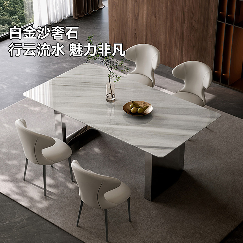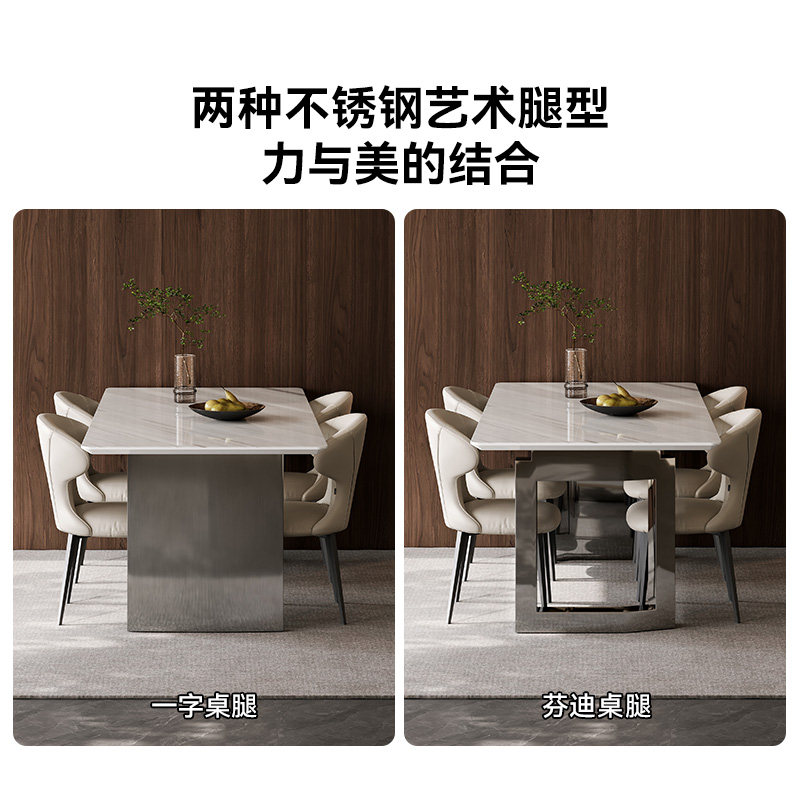 全友家居天然奢石餐桌椅组合客厅家用轻奢高级感不锈钢腿吃饭桌子
