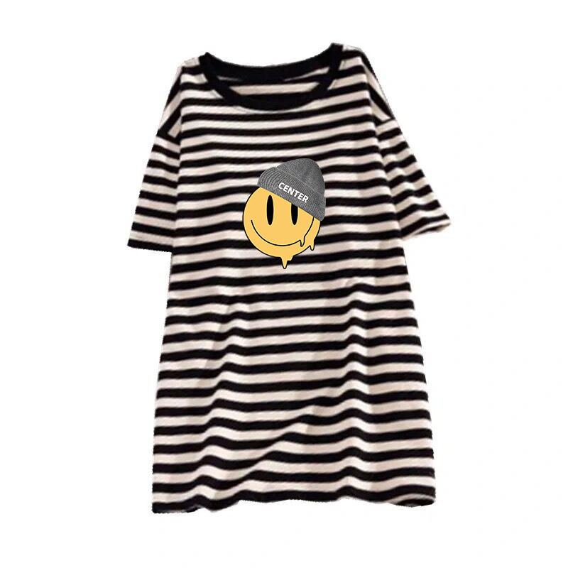 孕妇装夏季上衣圆领条纹宽松大码