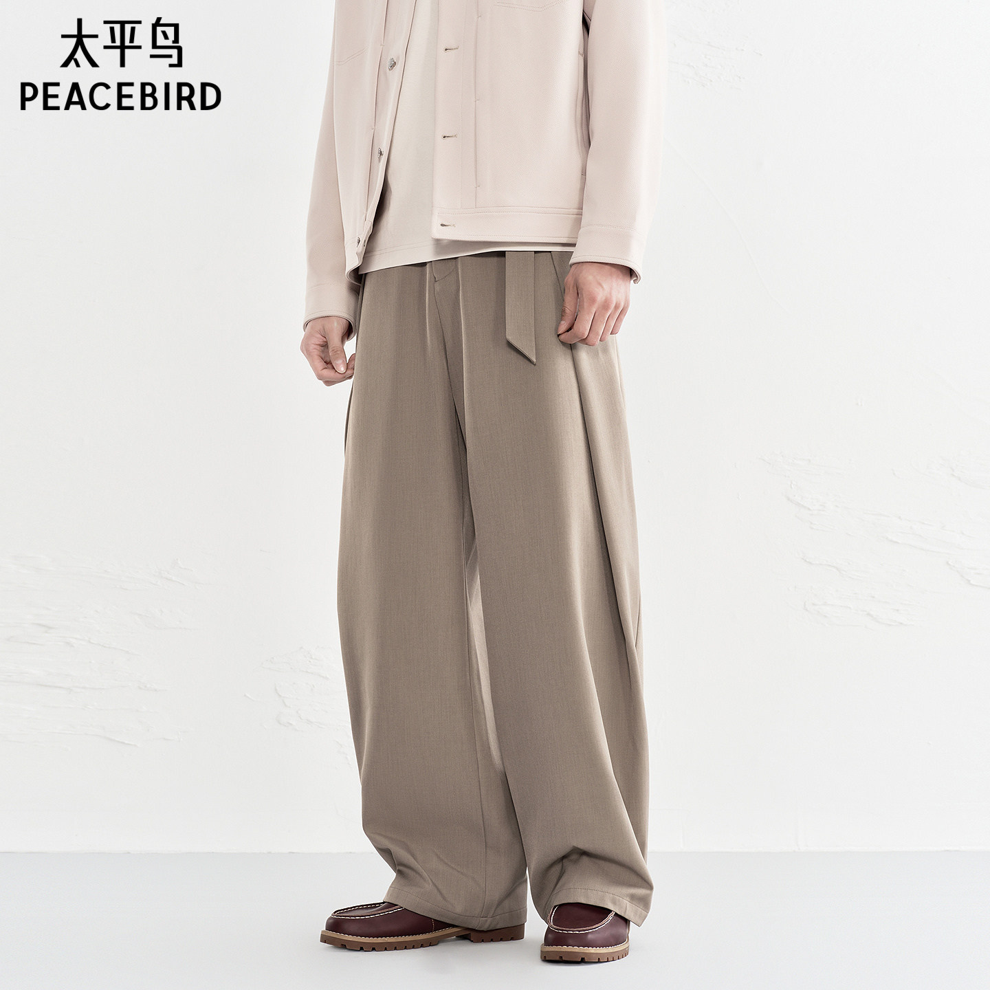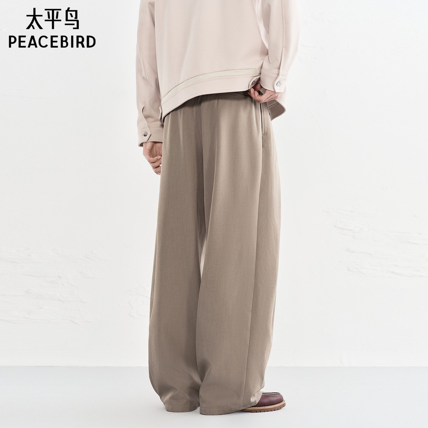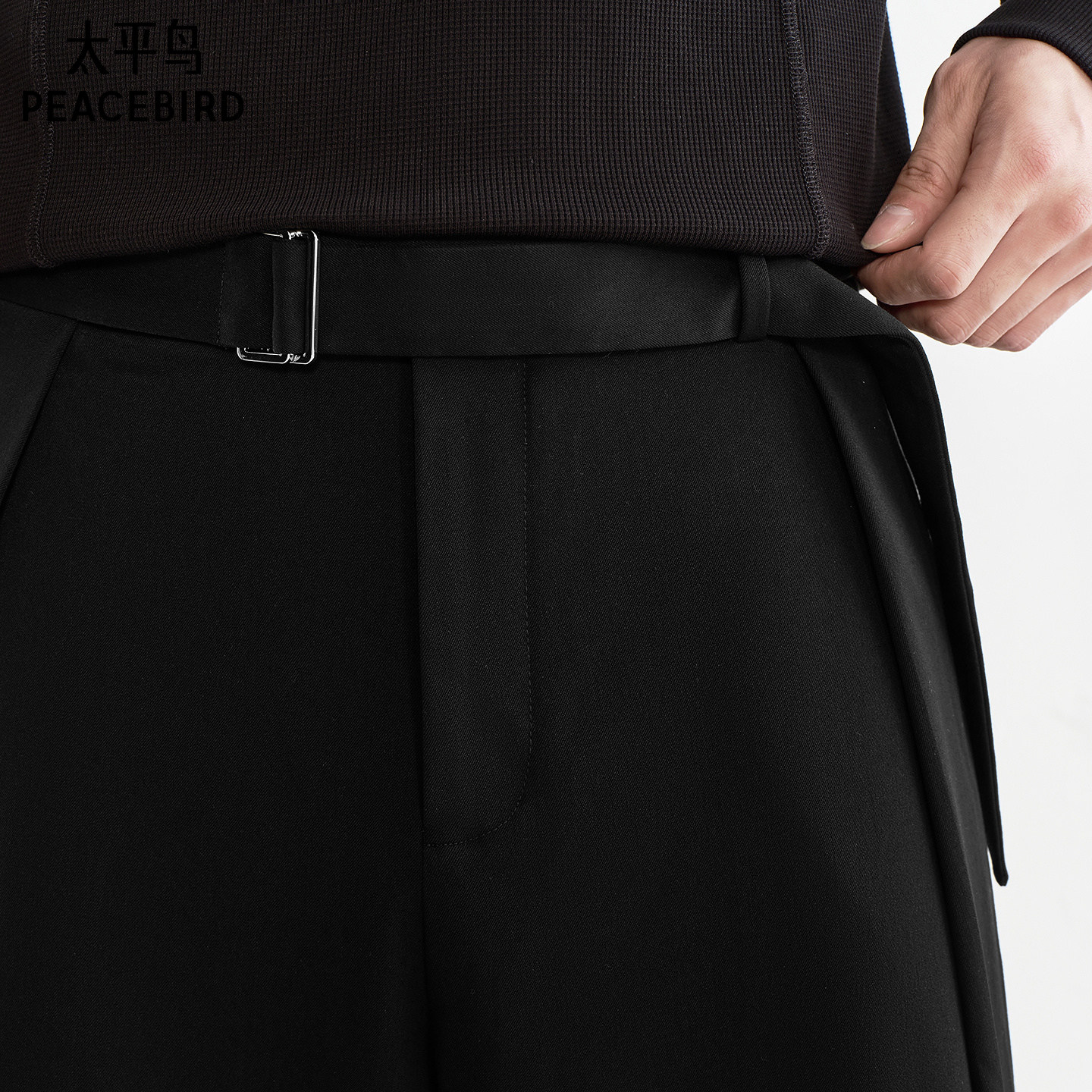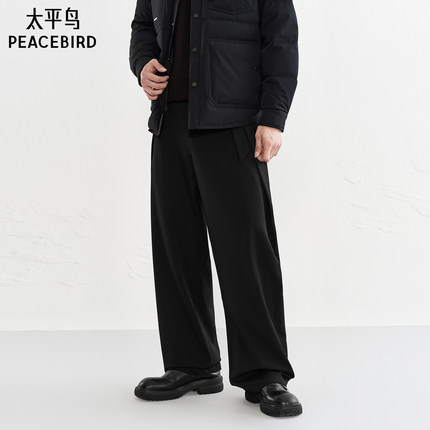 太平鸟男装时尚休闲裤秋冬新款黑色直筒裤阔腿质感宽松长裤潮