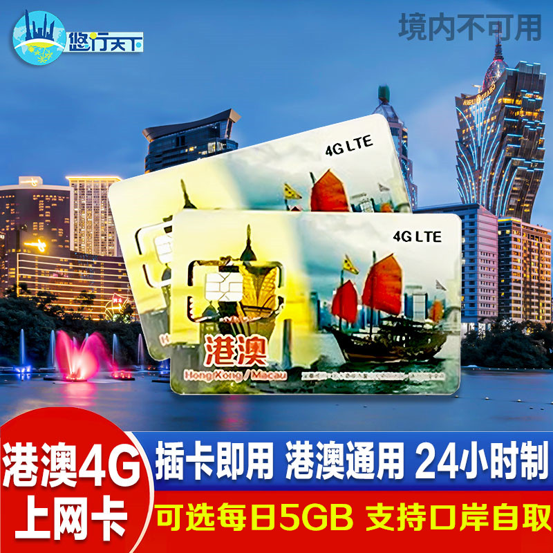 澳门电话卡港澳通用5G/4G手机卡1/2/3/4/5/7天上网流量卡口岸自取