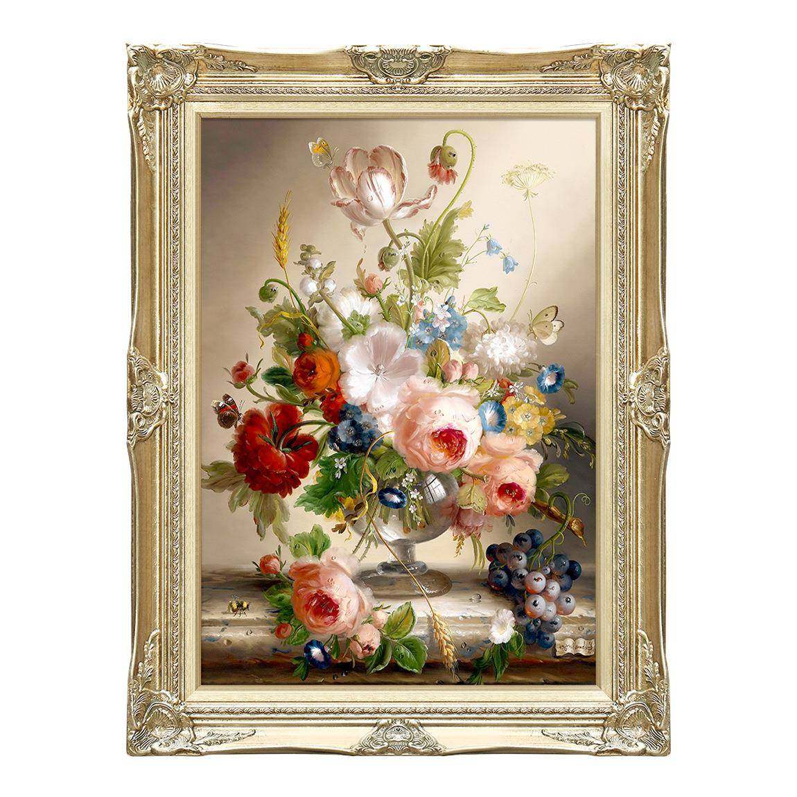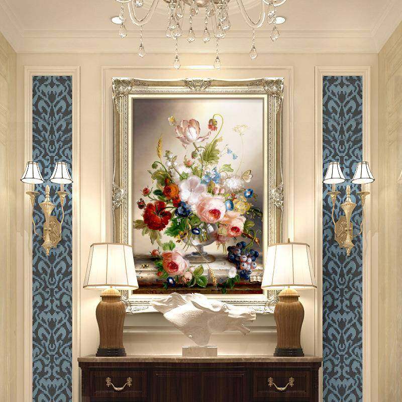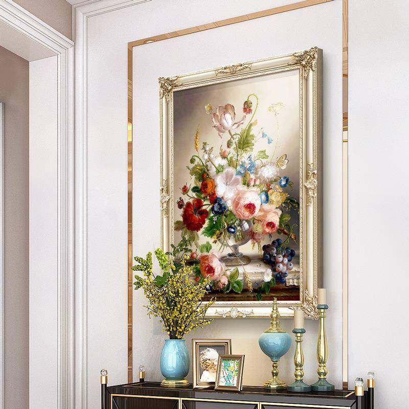 玄关装饰画竖版花卉壁画入户挂画简欧客厅三联欧式高档油画