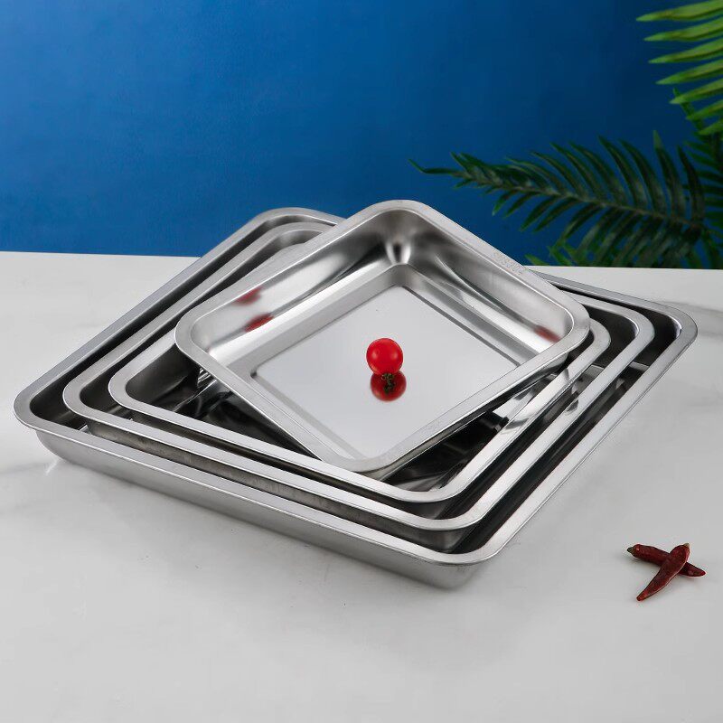 304不锈钢正方盘饭盘厨房打菜盘蒸饭盘烧烤盘托盘餐盘水果盘子