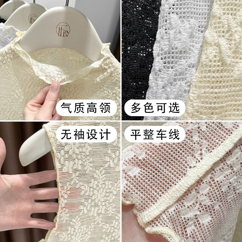 花边蕾丝假领子百搭女高档气质无袖背心高领镂空木耳边打底衫薄款