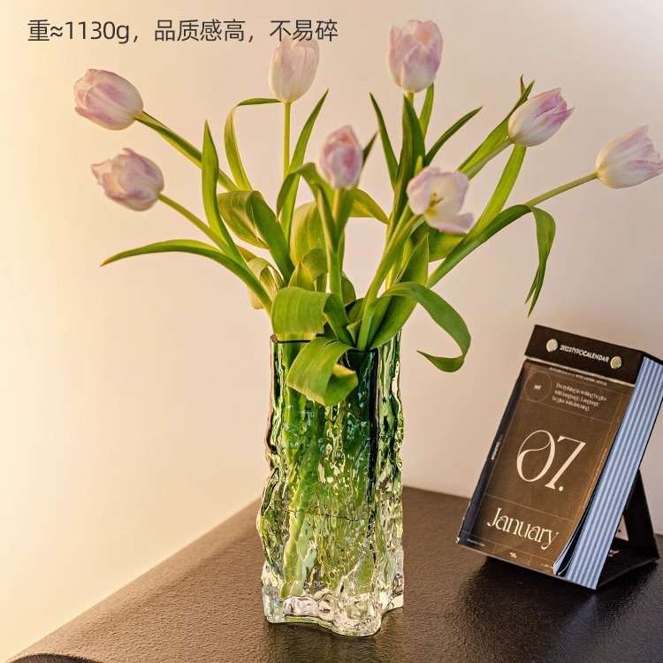 现代透明绿色玻璃花瓶高级感摆件客厅插花器水养水培餐桌家居创意