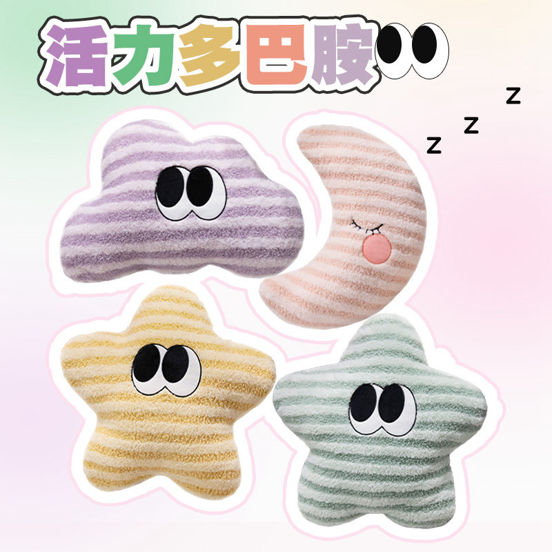 多巴胺条纹星星月亮抱枕靠垫腰靠办公室沙发大眼云朵靠枕毛绒玩具