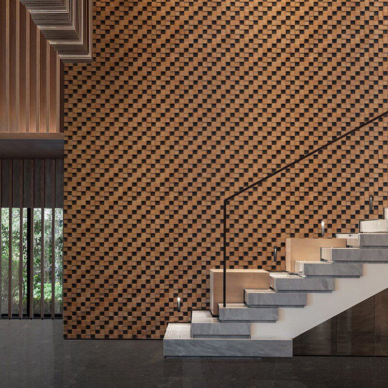 实木马赛克电视背景墙老船木木质原木方块火山岩墙面家装主材建材