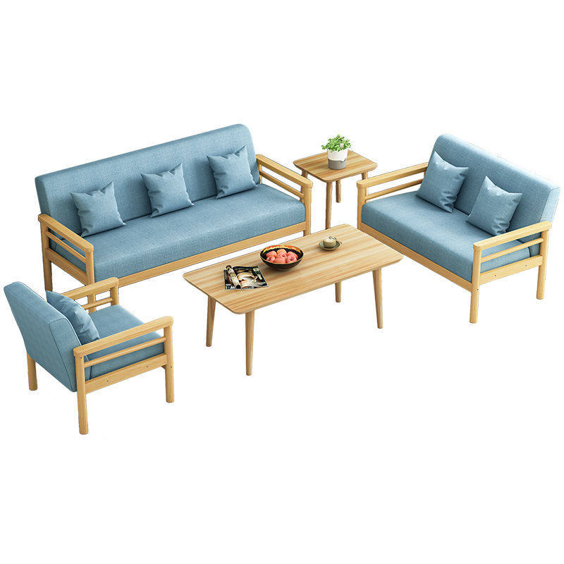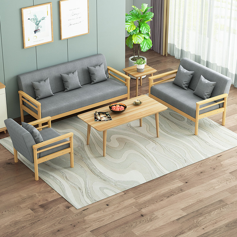 现代布艺三人位实木沙发茶几小户型出租房客厅办公椅