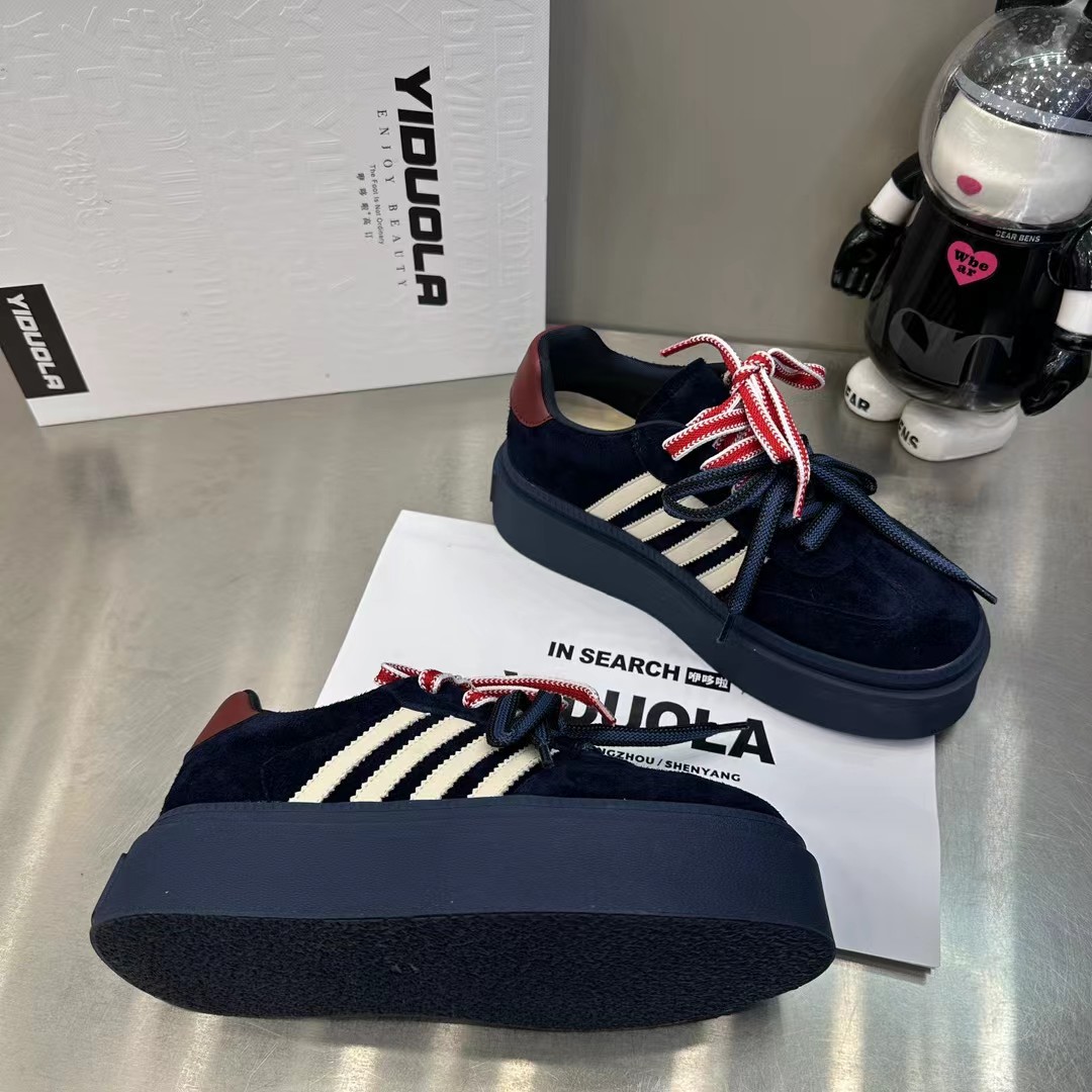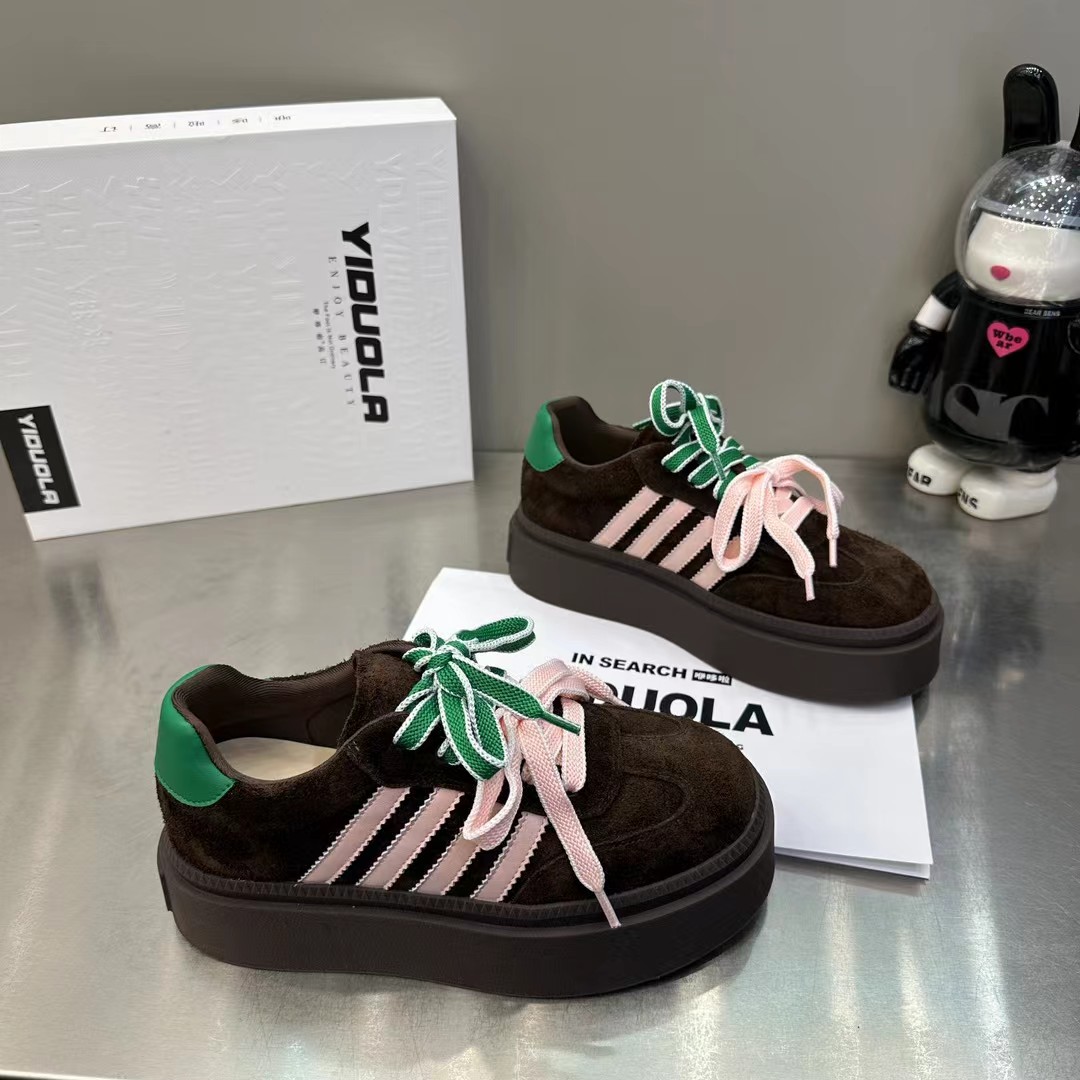 2025新款真皮厚底德训鞋女百搭休闲板鞋小个子增高系带单鞋
