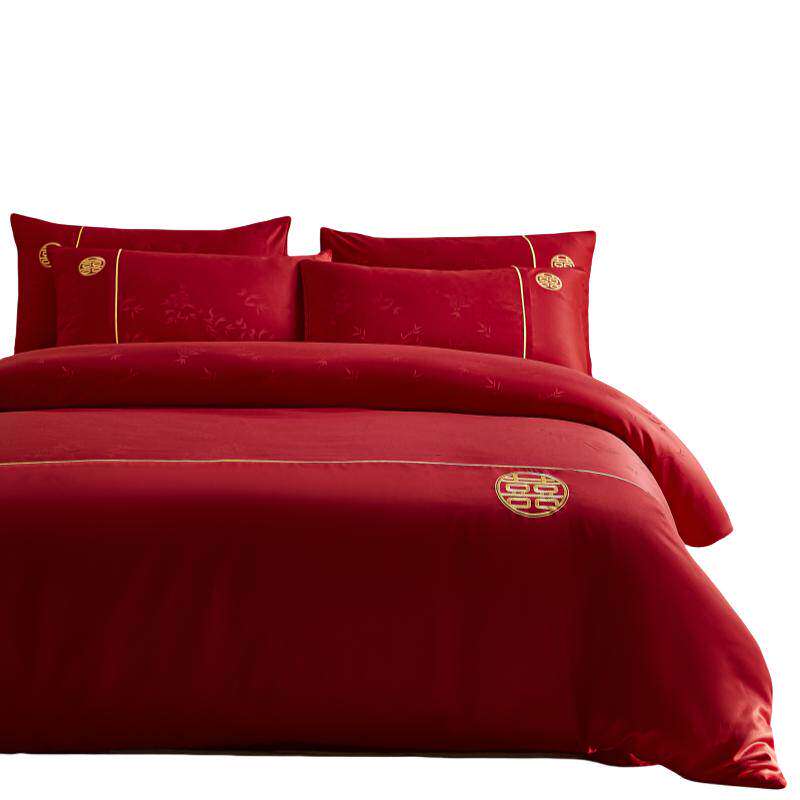 中式喜字结婚四件套大红色陪嫁床单被套纯棉婚庆床上用品婚房喜被