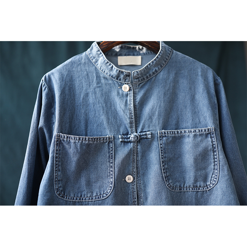 新款复古风牛仔棉宽松立领盘扣