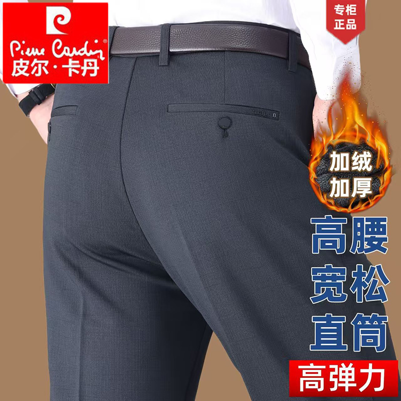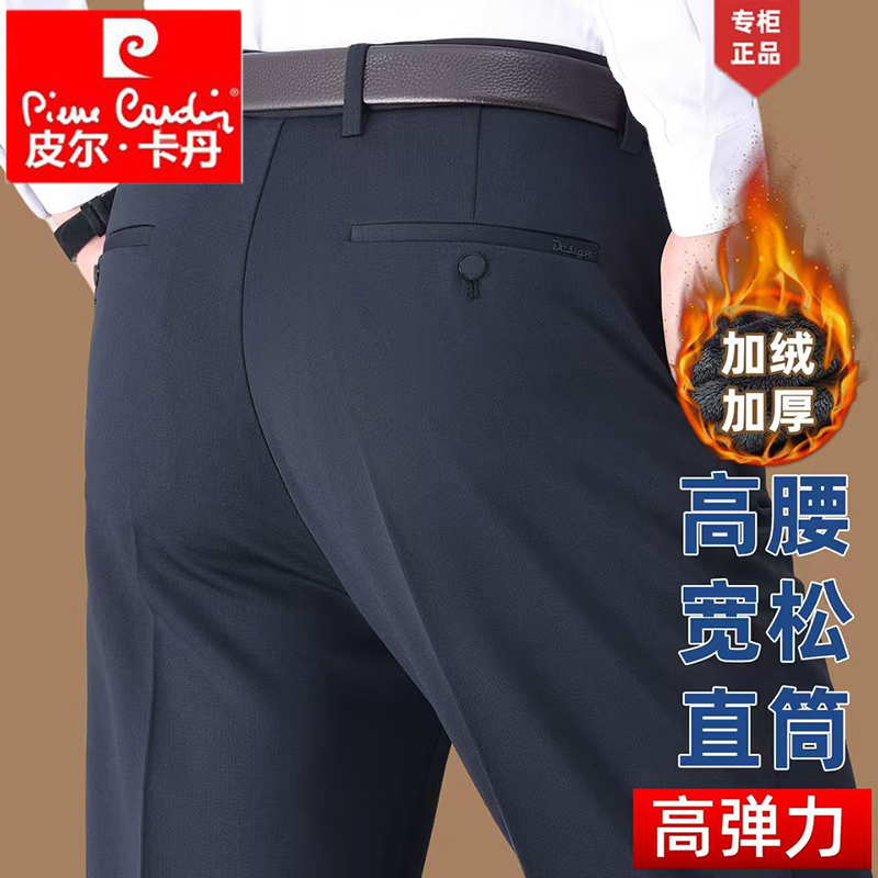 皮尔卡丹中年宽松休闲裤秋冬直筒弹力西裤中老年加绒商务爸爸长裤