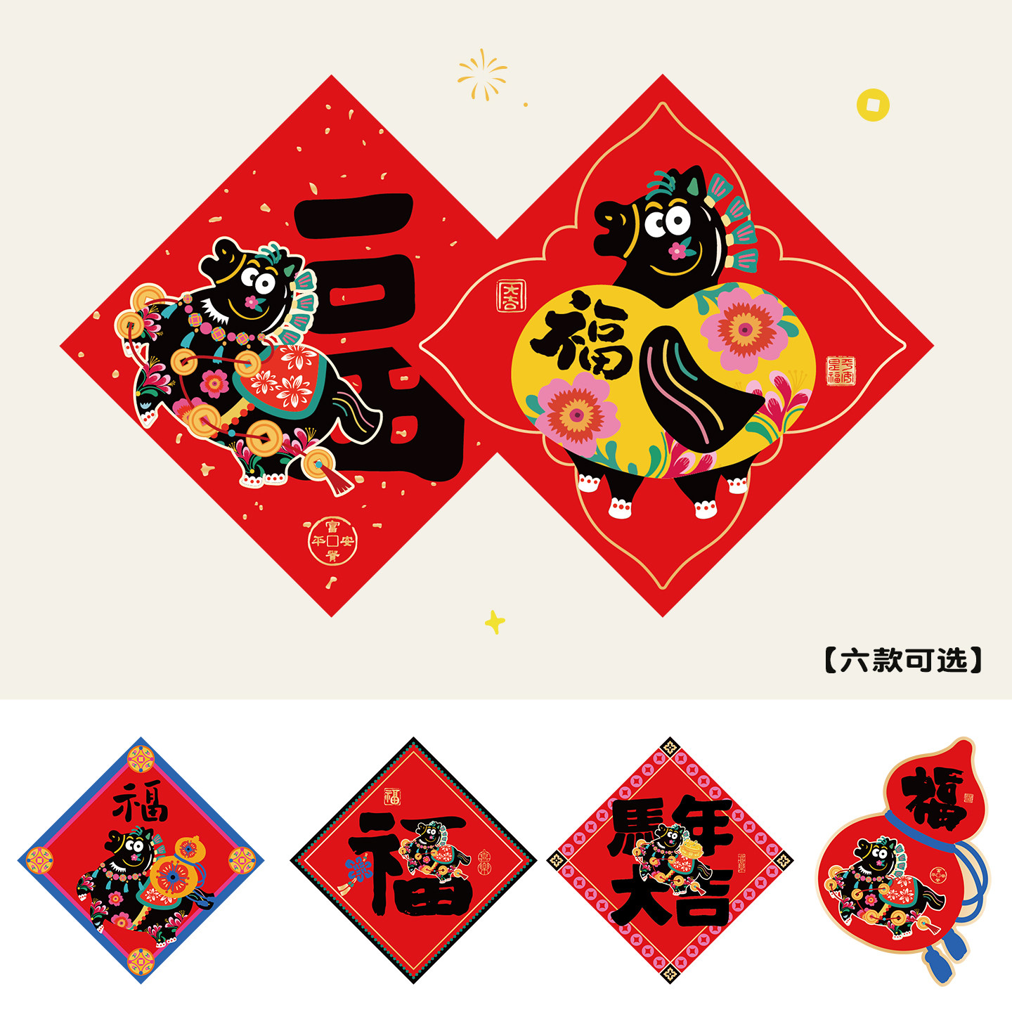 马年福字2026新款新年装饰福字门贴客厅入户门马年福字贴纸布置