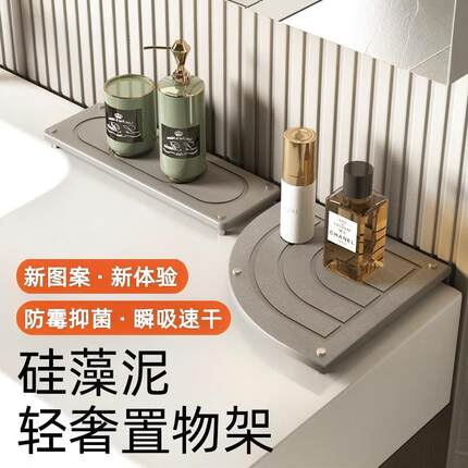 硬硅藻泥吸水垫洗漱手台面沥水架放牙刷漱口杯垫浴室转角收纳神器