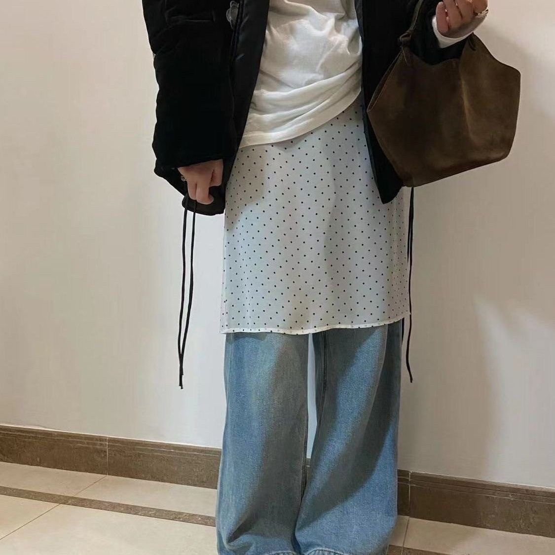 韩国小众设计蕾丝裙叠穿屁帘女外搭网纱裙帘罩衫遮臀波点半身围裙