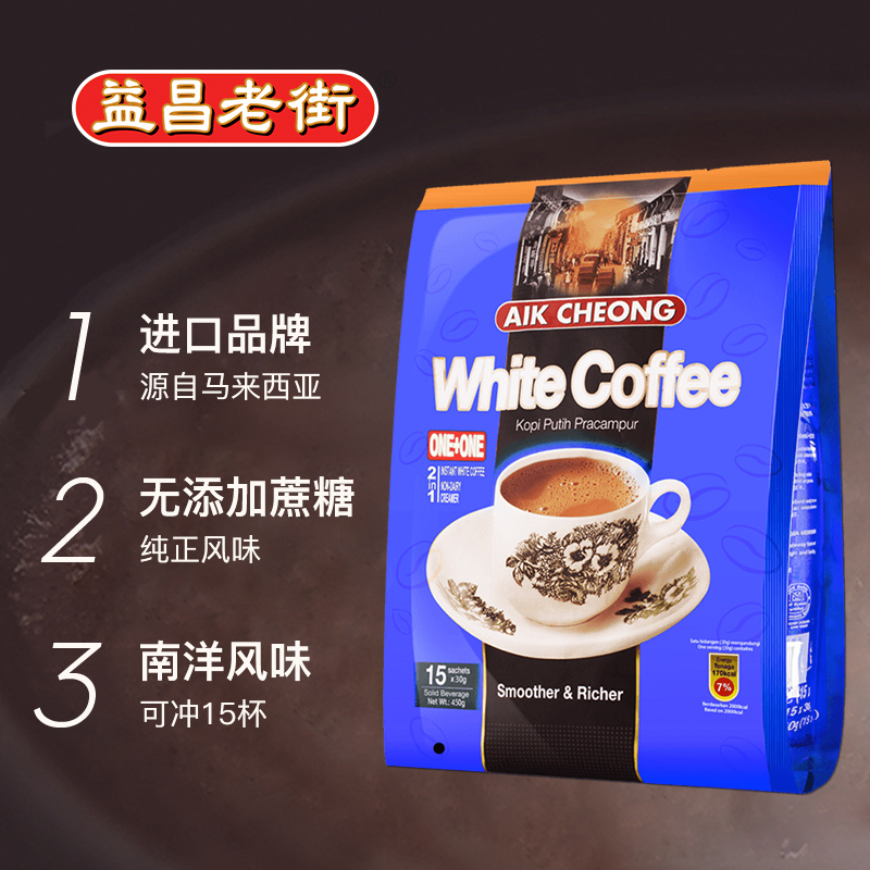 马来西亚进口益昌老街二合一白咖啡粉条装拿铁无蔗糖速溶咖啡450g