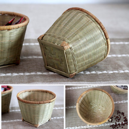 头层竹青皮编水果零食筐创意收纳篮圆形编织鸡蛋筐葱蒜收纳装饰篮