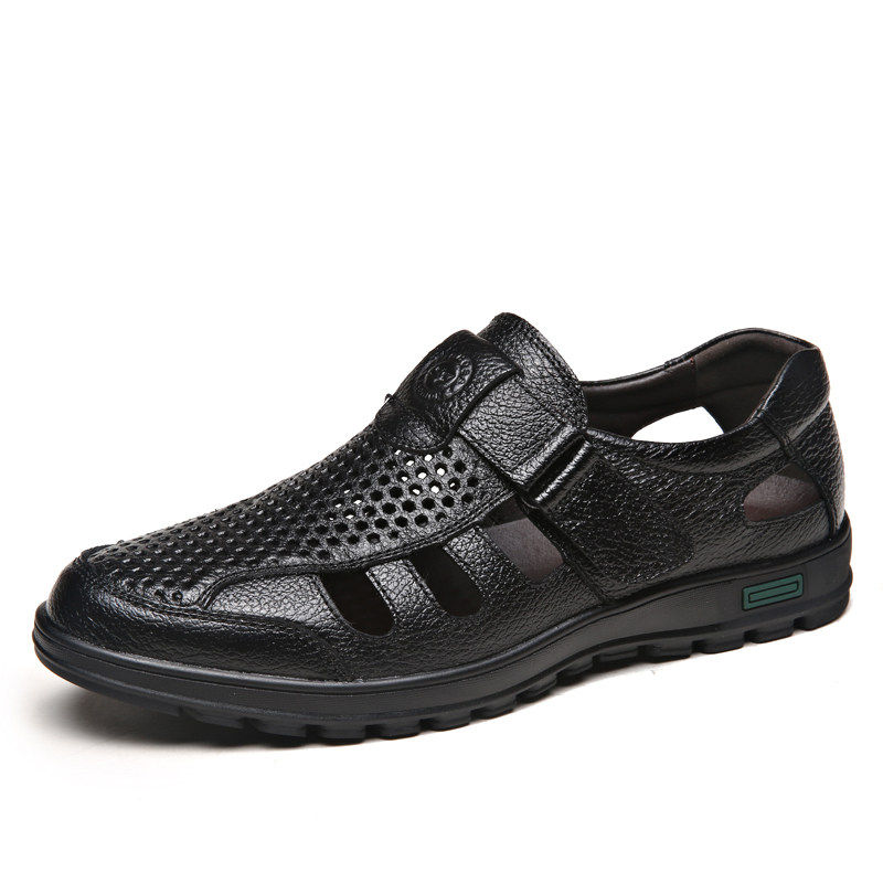 皮凉鞋男真皮夏季透气软底防滑镂空洞洞中老年爸爸大码休闲凉皮鞋