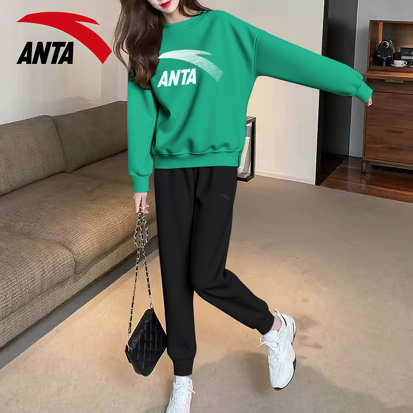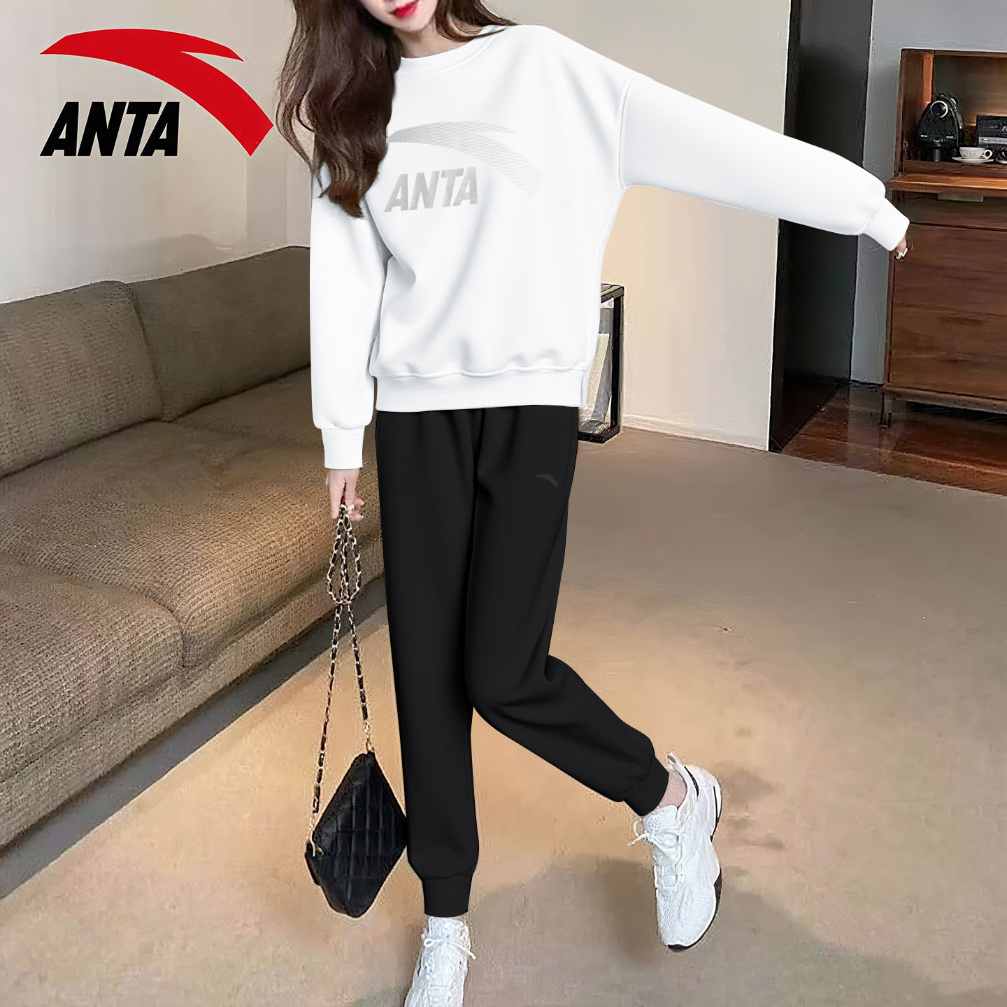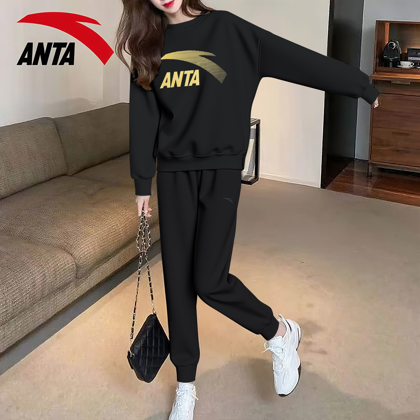 安踏运动套装女黑色显瘦卫衣卫裤春季宽松大码长袖时尚休闲运动服