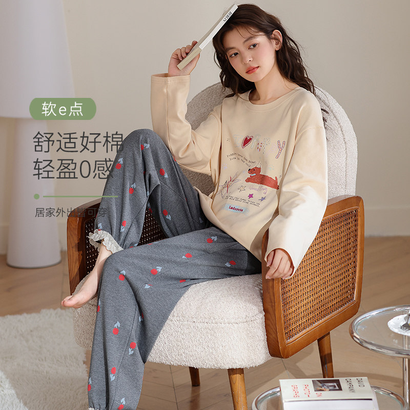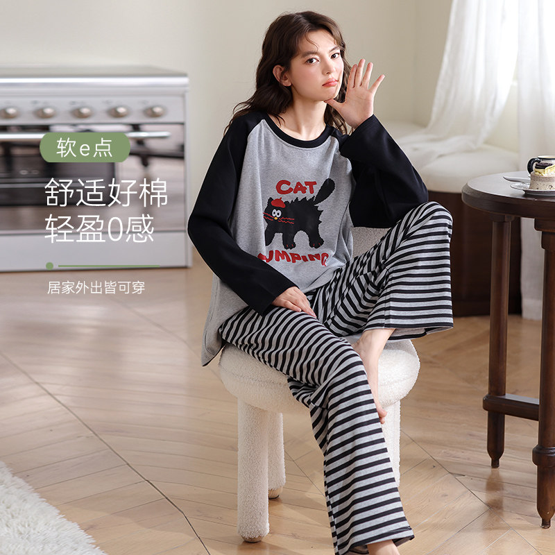 2025新款长袖睡衣女款秋冬季纯棉少女可外穿春秋款家居服套装全棉