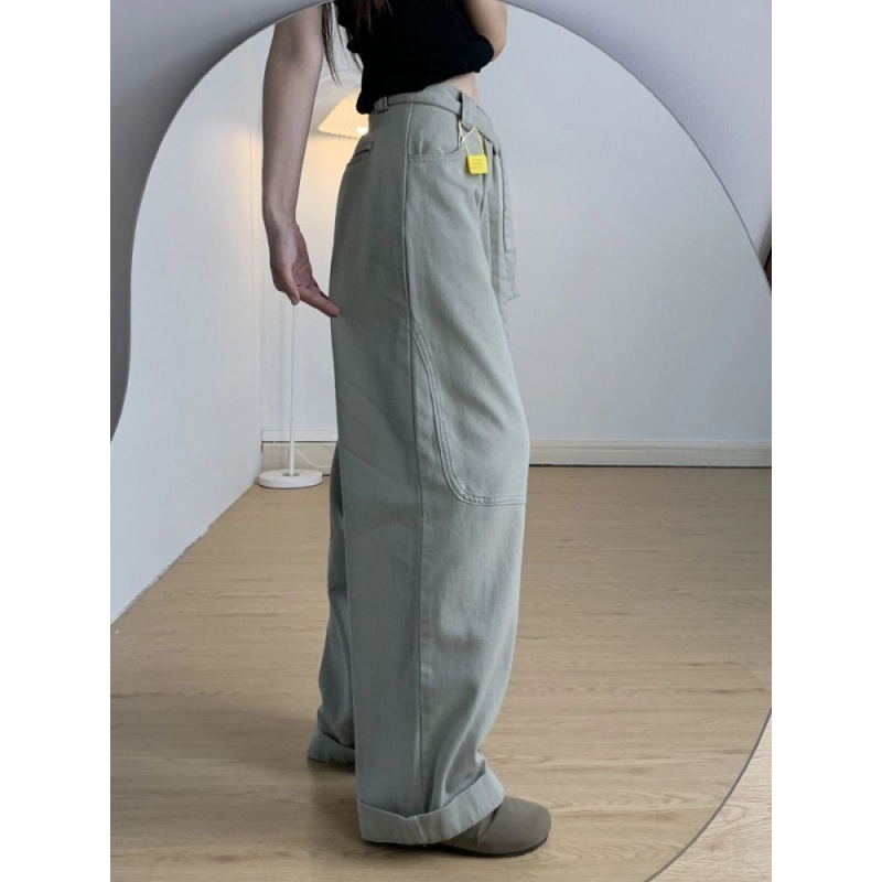 韩版ins复古牛仔裤女秋季新款学生百搭直筒裤宽松显瘦高腰阔腿裤