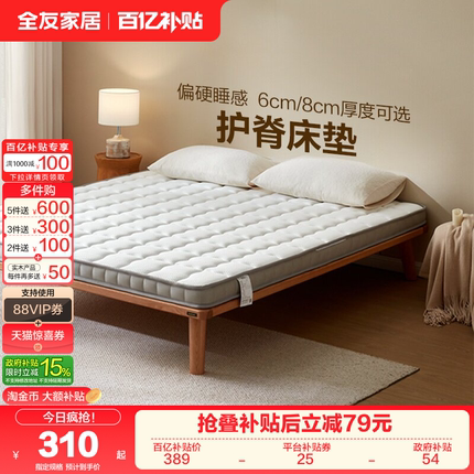 全友家居0胶水棕垫天然椰棕床垫硬垫子卧室家用榻榻米床垫180x200