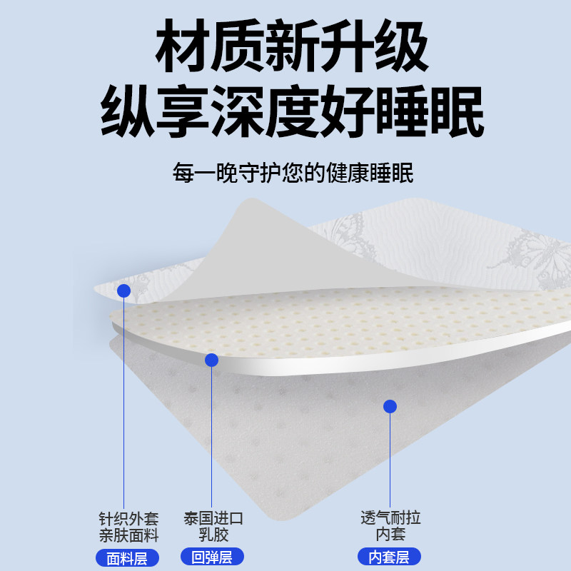 九霄泰国纯天然乳胶床垫家用 进口橡胶床垫学生宿舍单双人软垫子