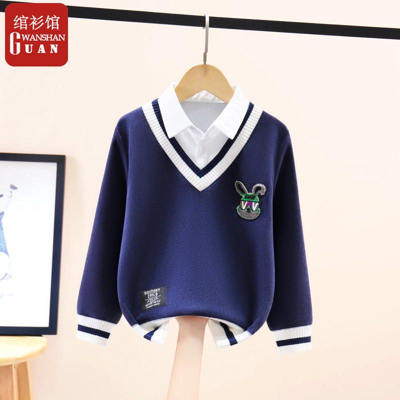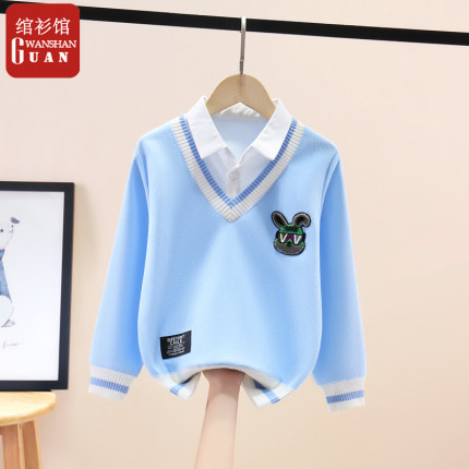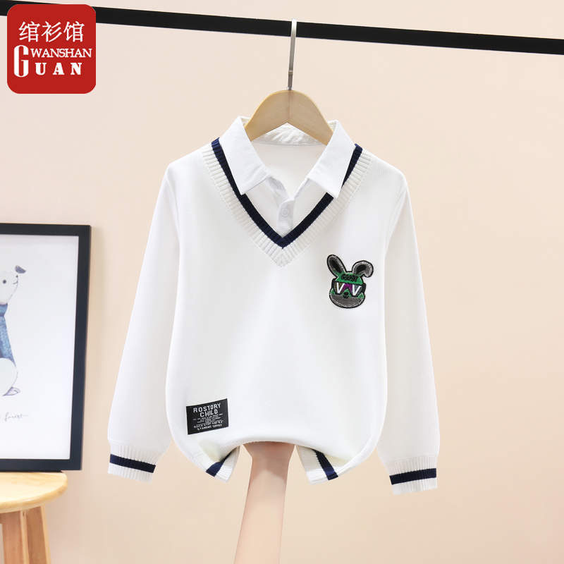 假两件长袖卫衣t恤男童衬衫领