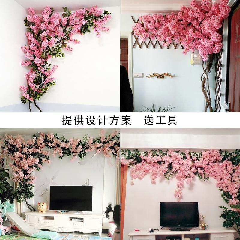 仿真枝婚庆树装饰藤蔓客厅卧室吊顶塑料假花藤条树藤套装