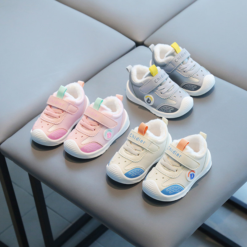 婴儿学步鞋冬季防滑软底1-3岁2男女宝宝加绒加厚防踢小童机能棉鞋