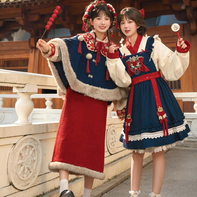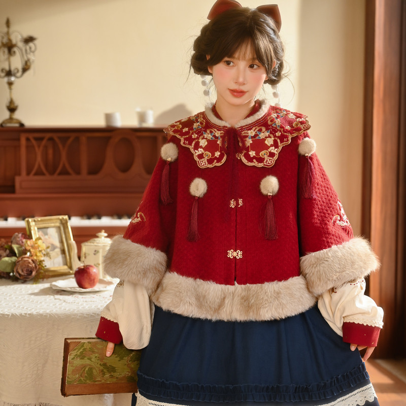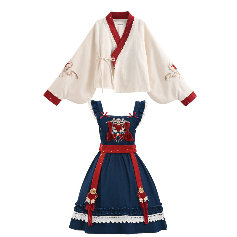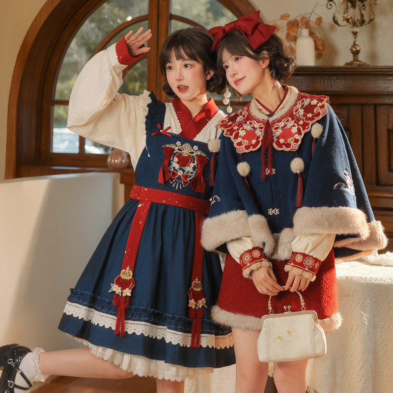 森女部落国风复古刺绣新年连衣裙女新款宽松撞色设计感背带裙冬季