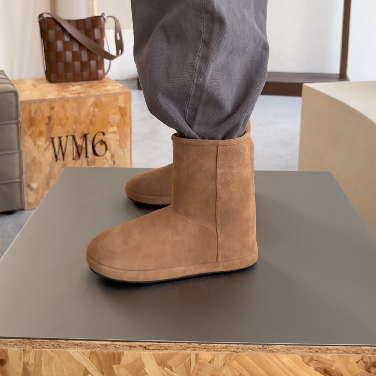 WM6欧洲站欧货真皮女靴2025冬季新款平底加绒羊毛豹纹雪地靴短靴