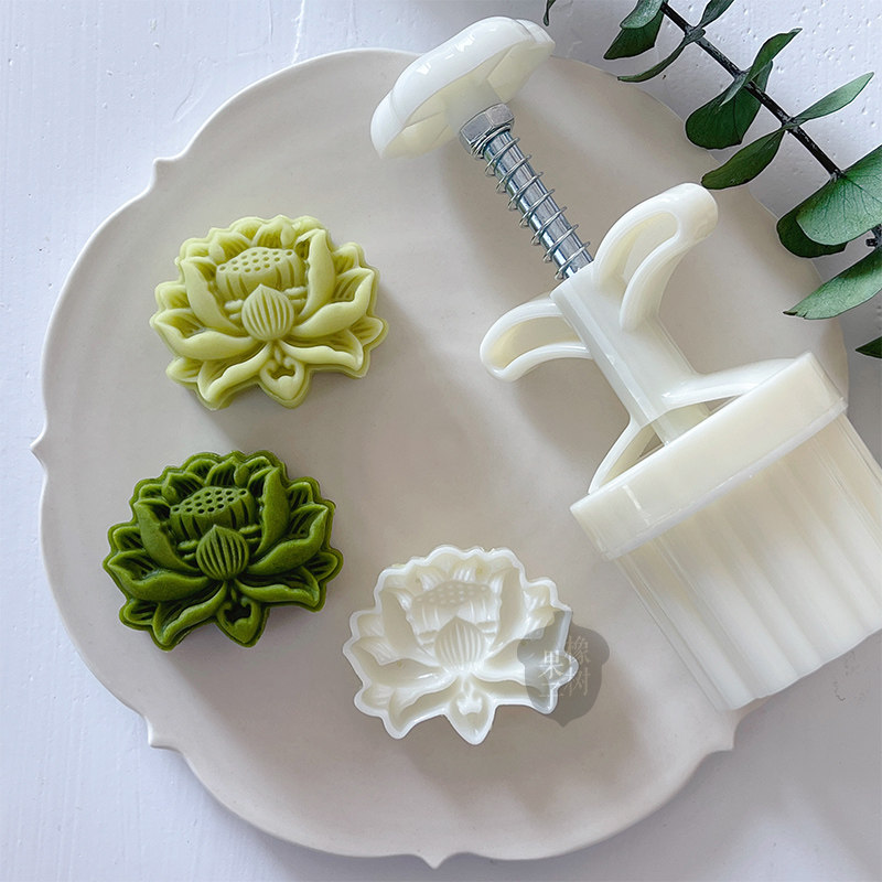 橡树果子50g玉莲花绿豆糕模中秋节花卉月饼模荷花中式糕点手压模