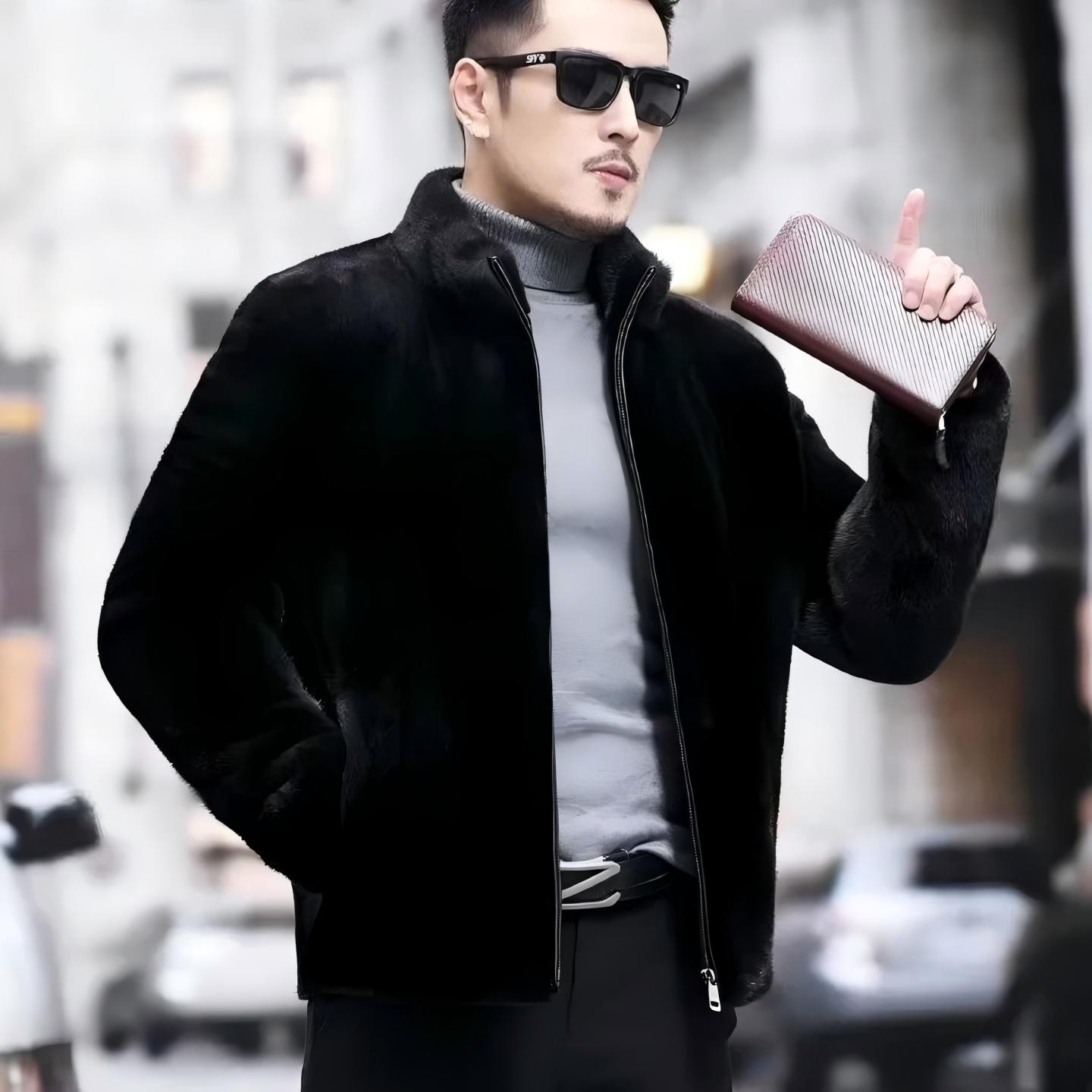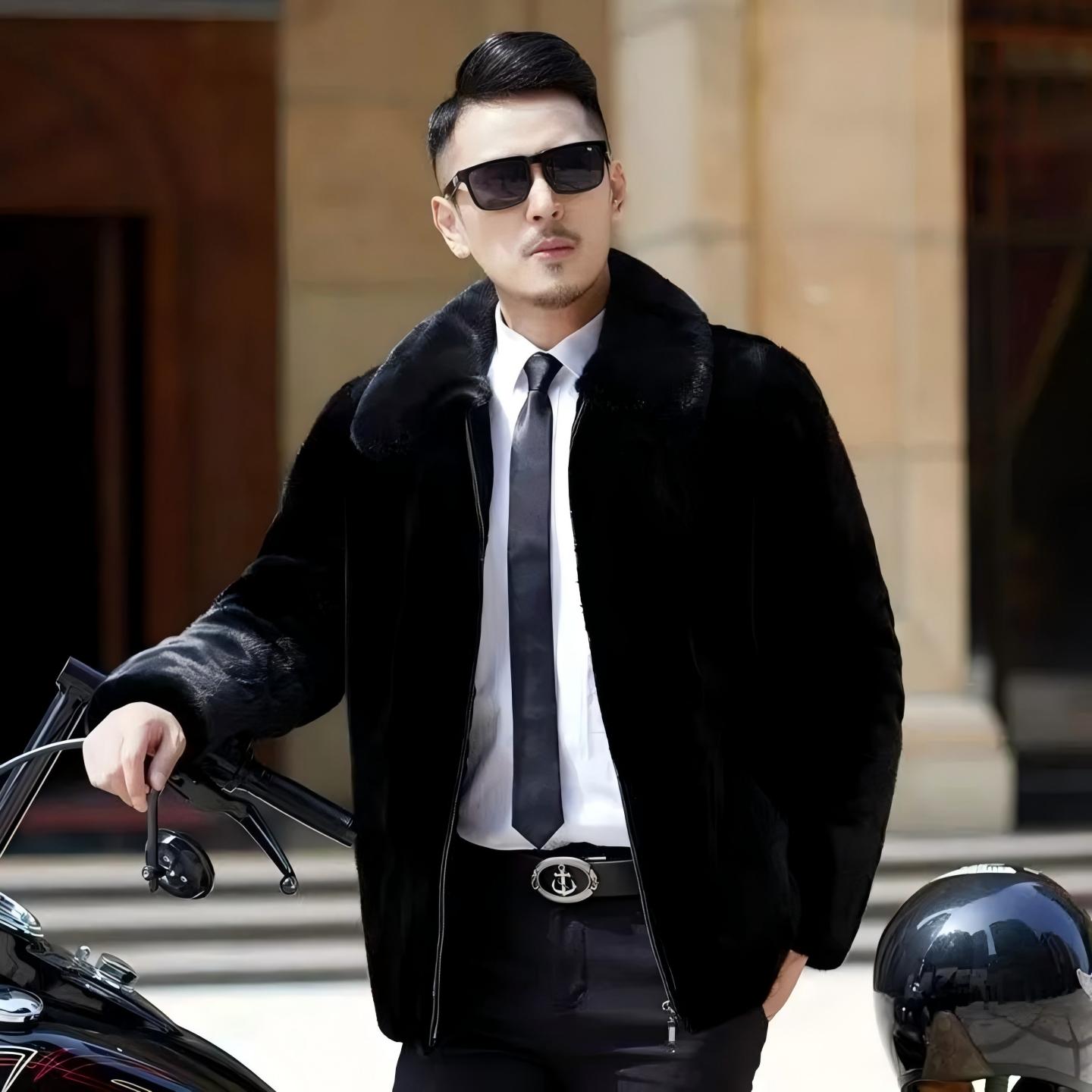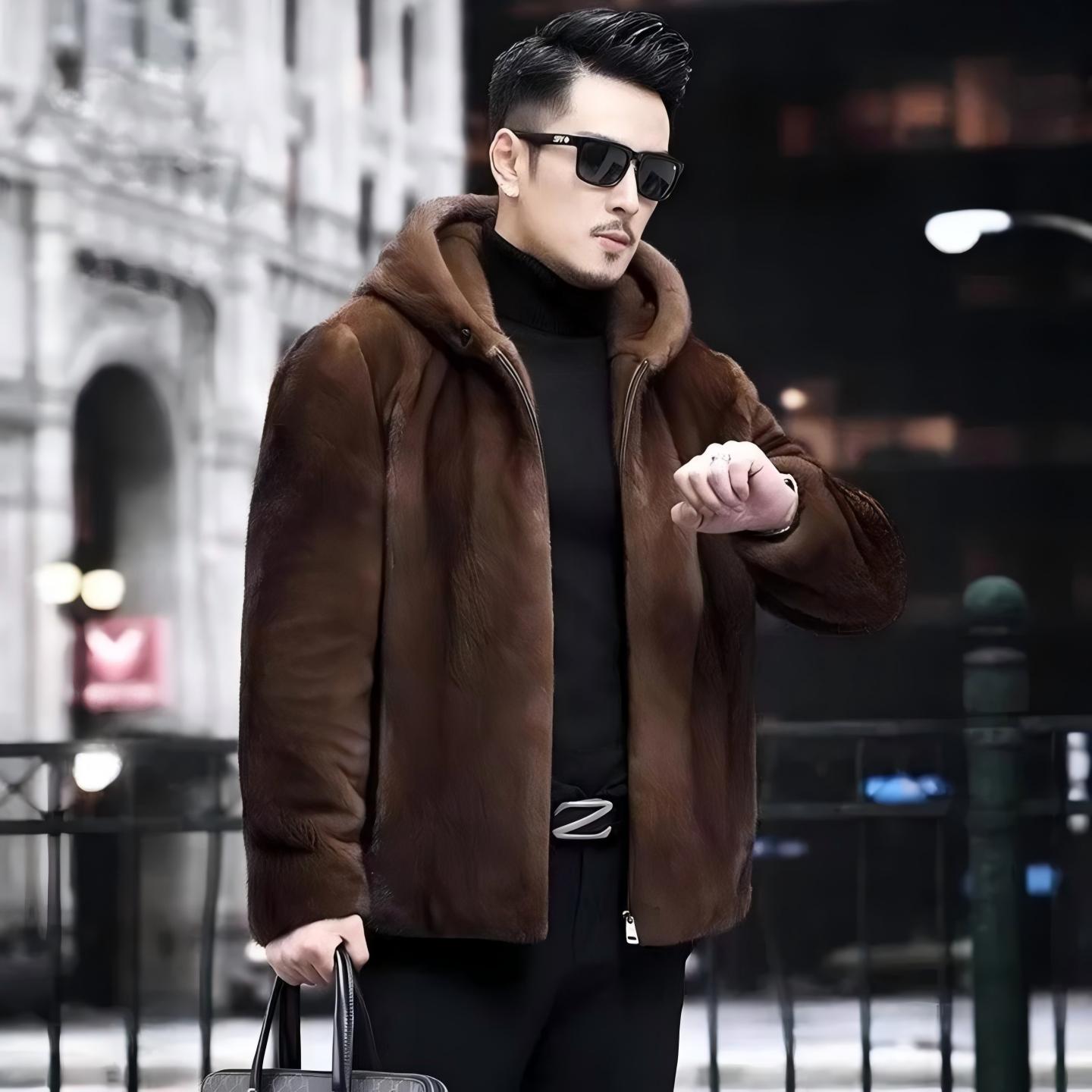 貂皮外套男冬季翻毛领仿水貂绒皮毛一体整貂皮衣皮草连帽貂绒大衣