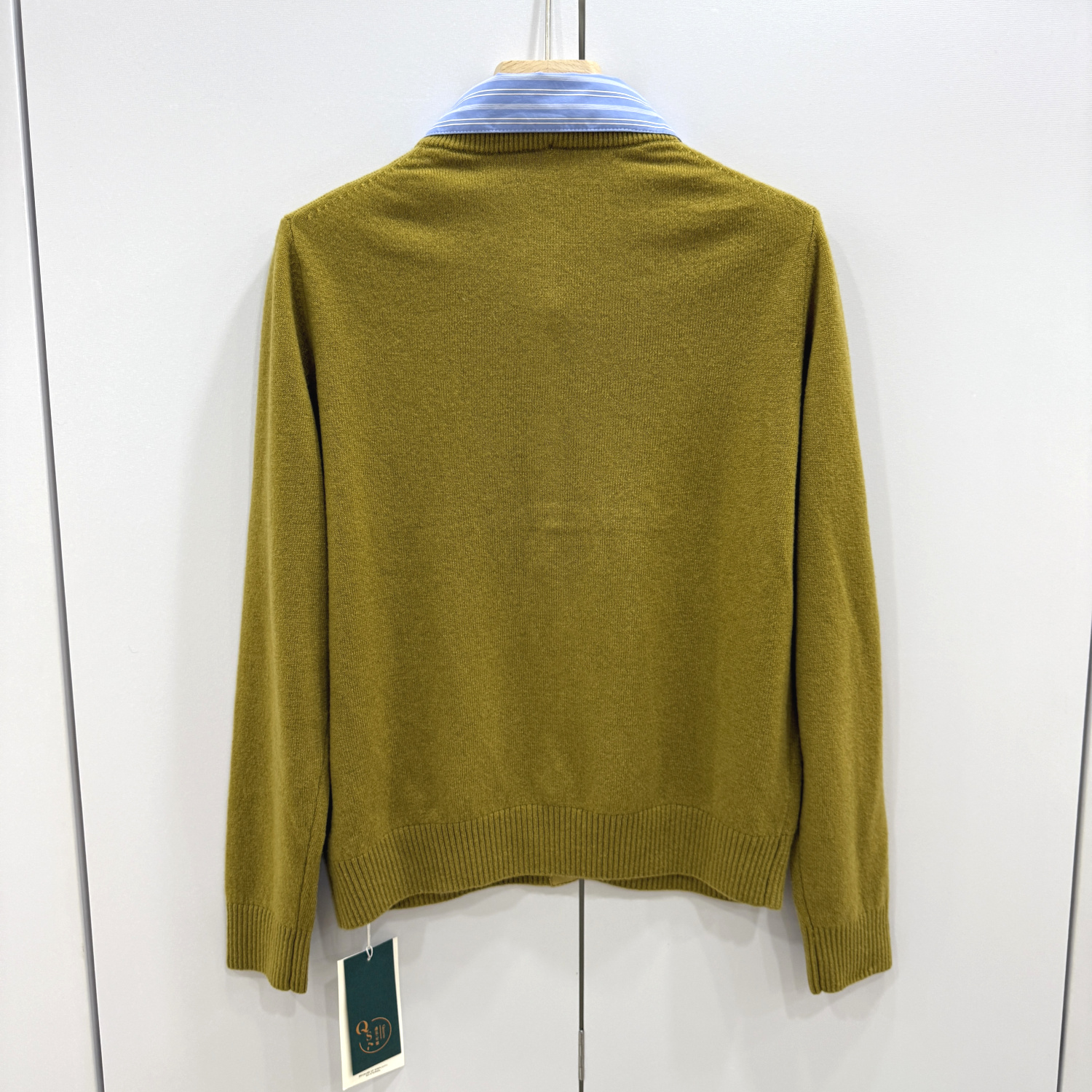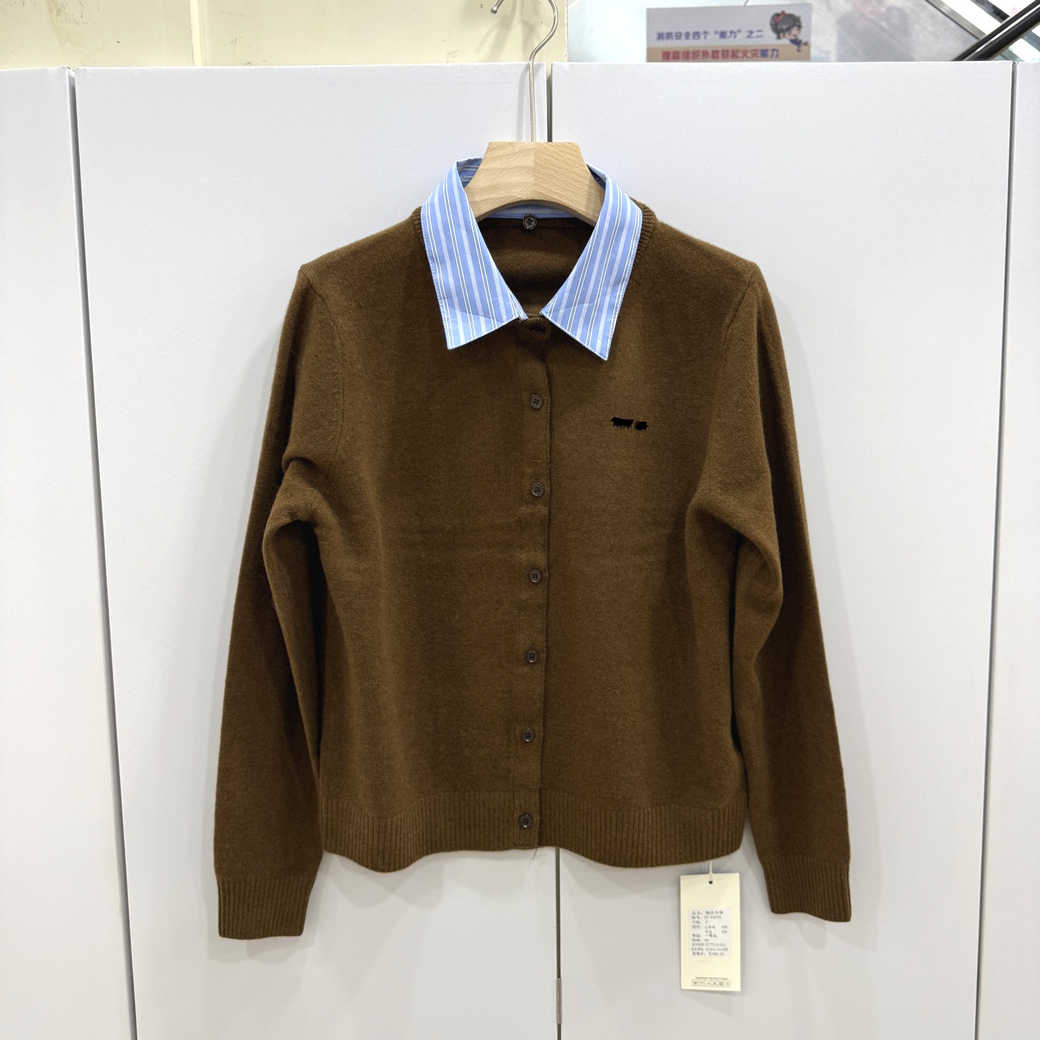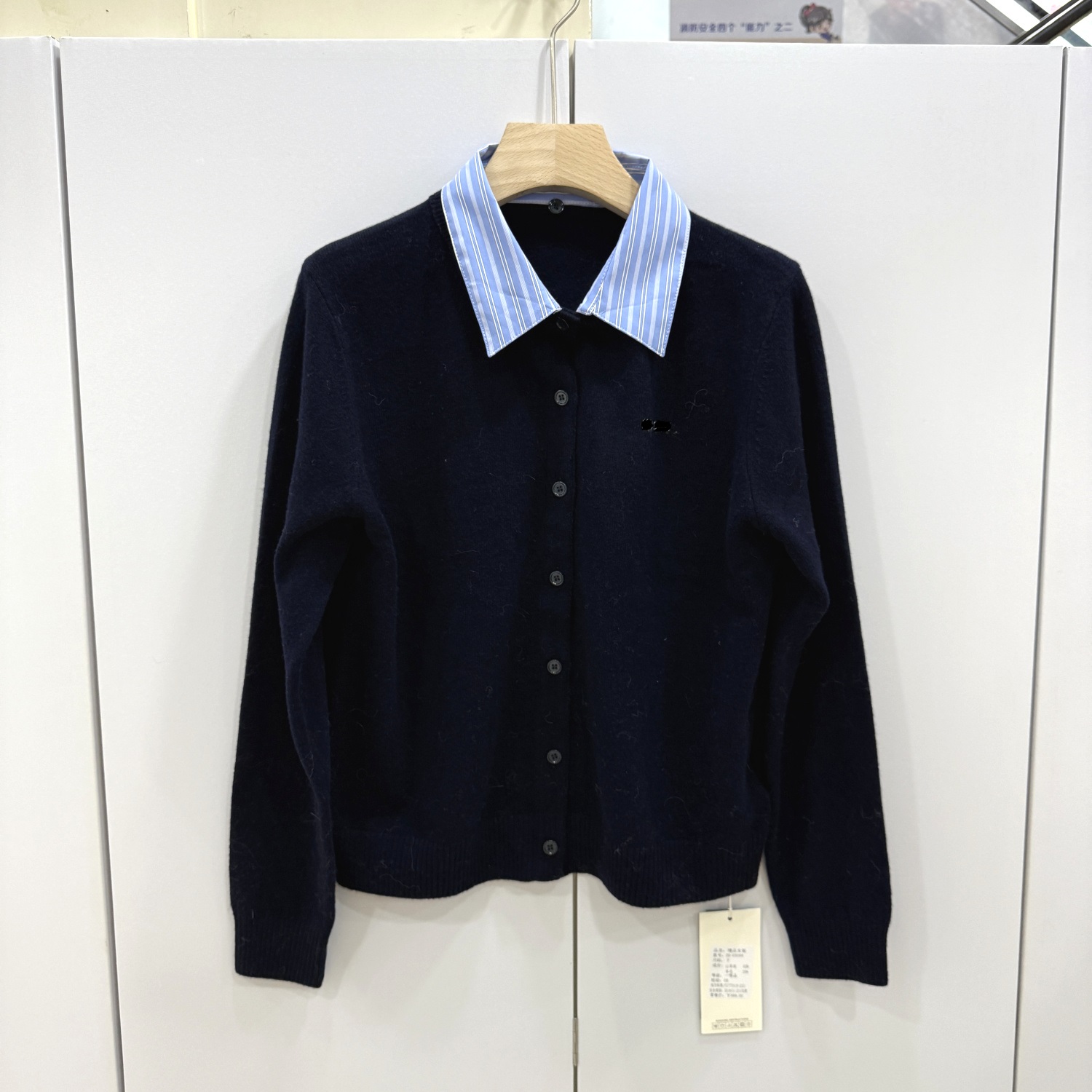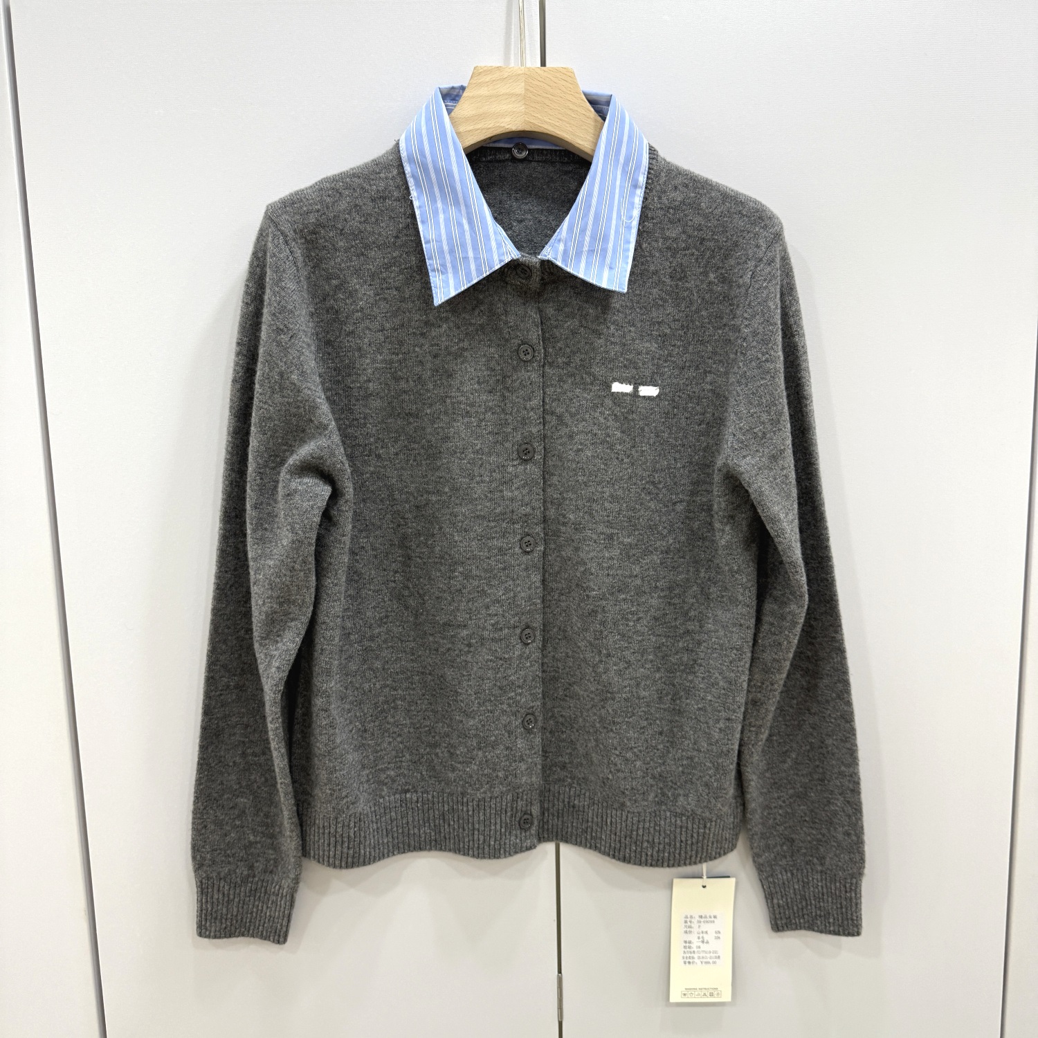 59-69098 欧洲站2025秋冬新款时尚翻领拼接假两件羊毛针织开衫