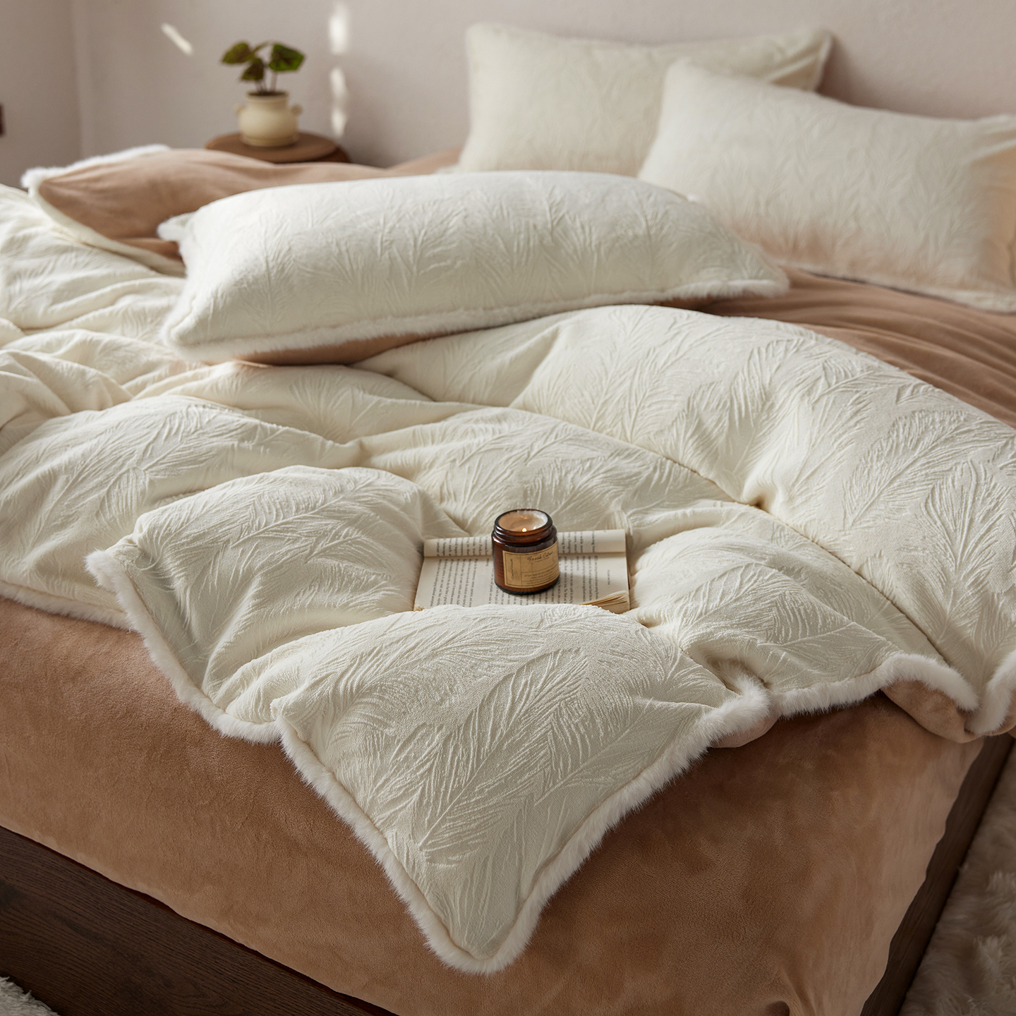 冬季立体雕花牛奶绒四件套加厚绒双面珊瑚绒被套亲肤保暖床上用品