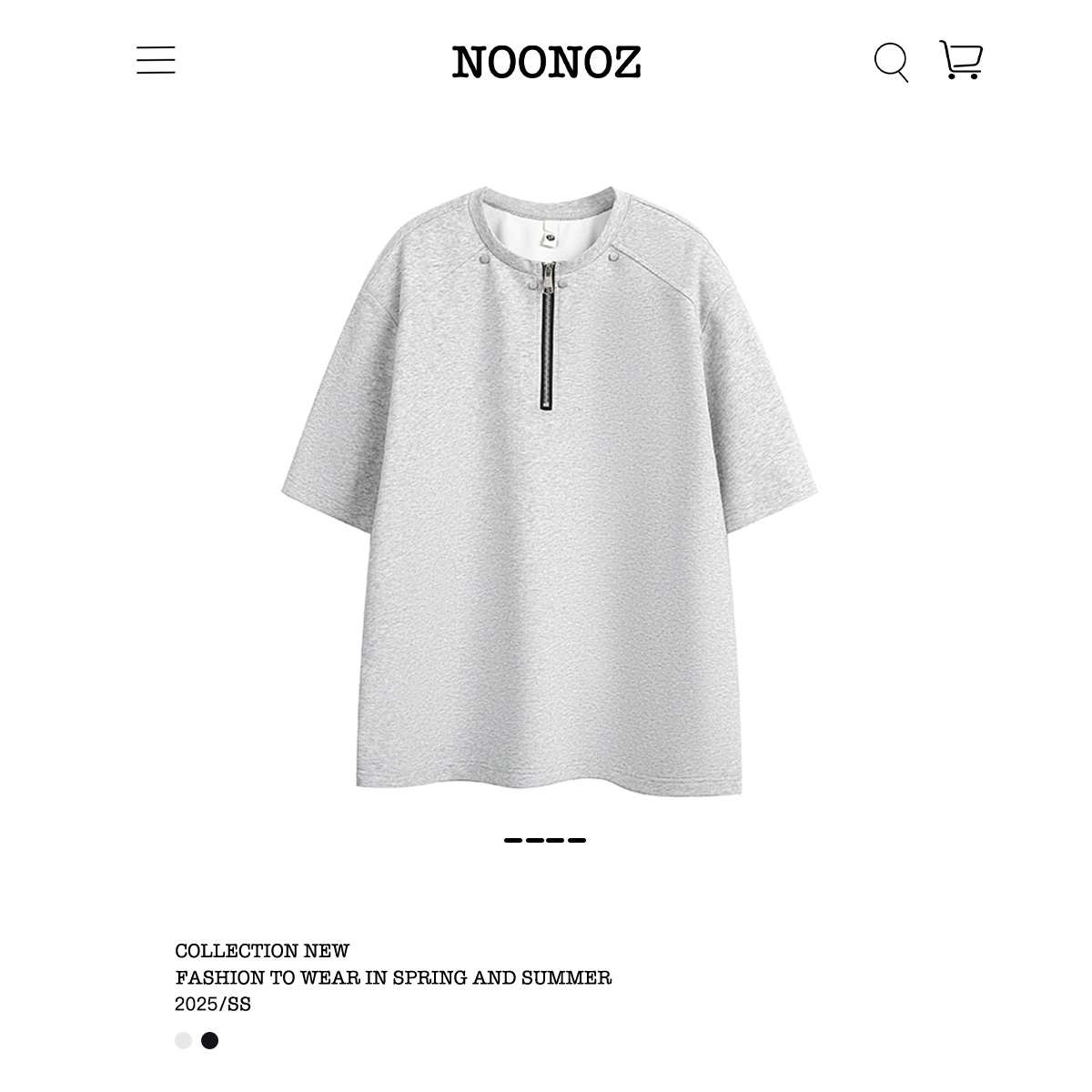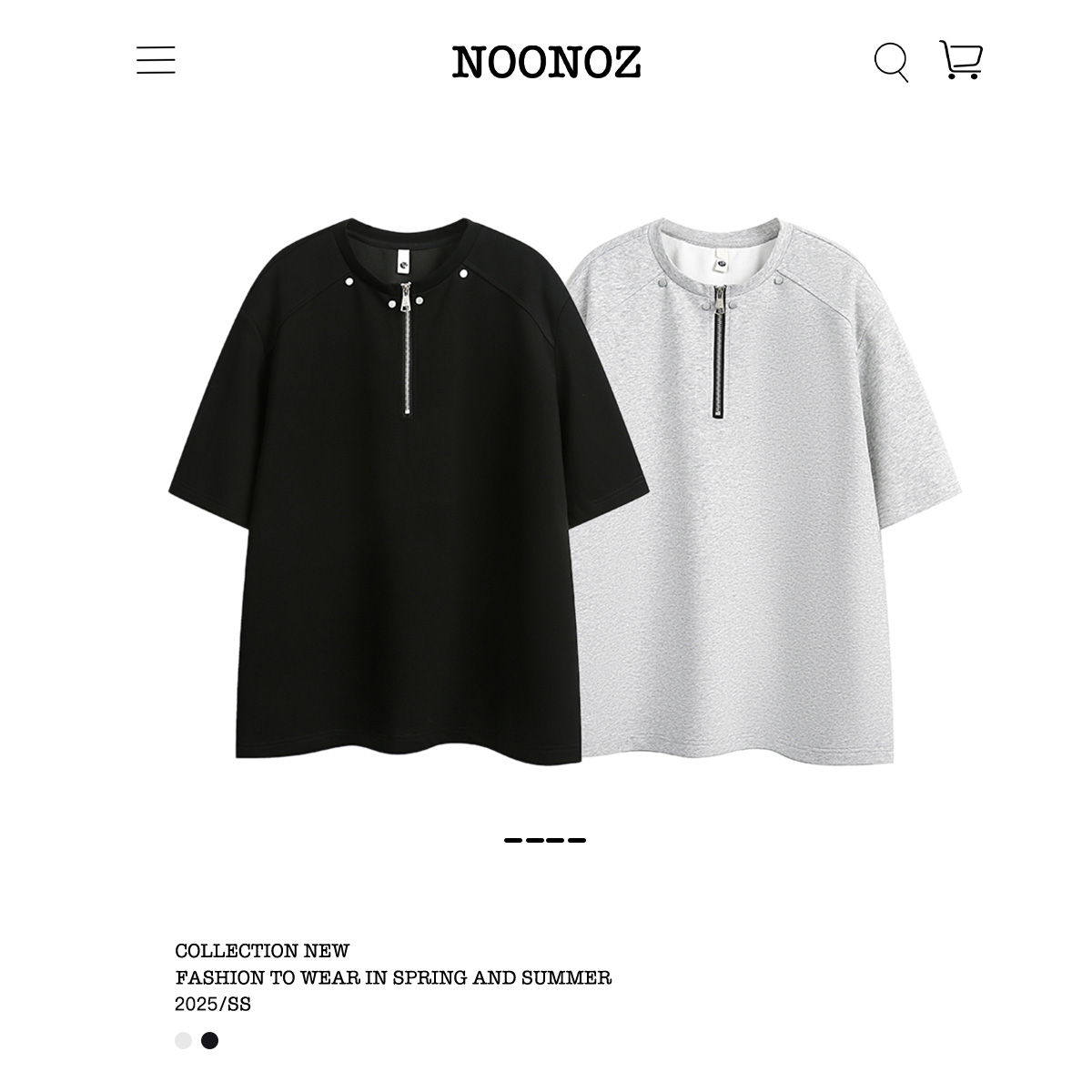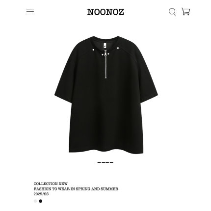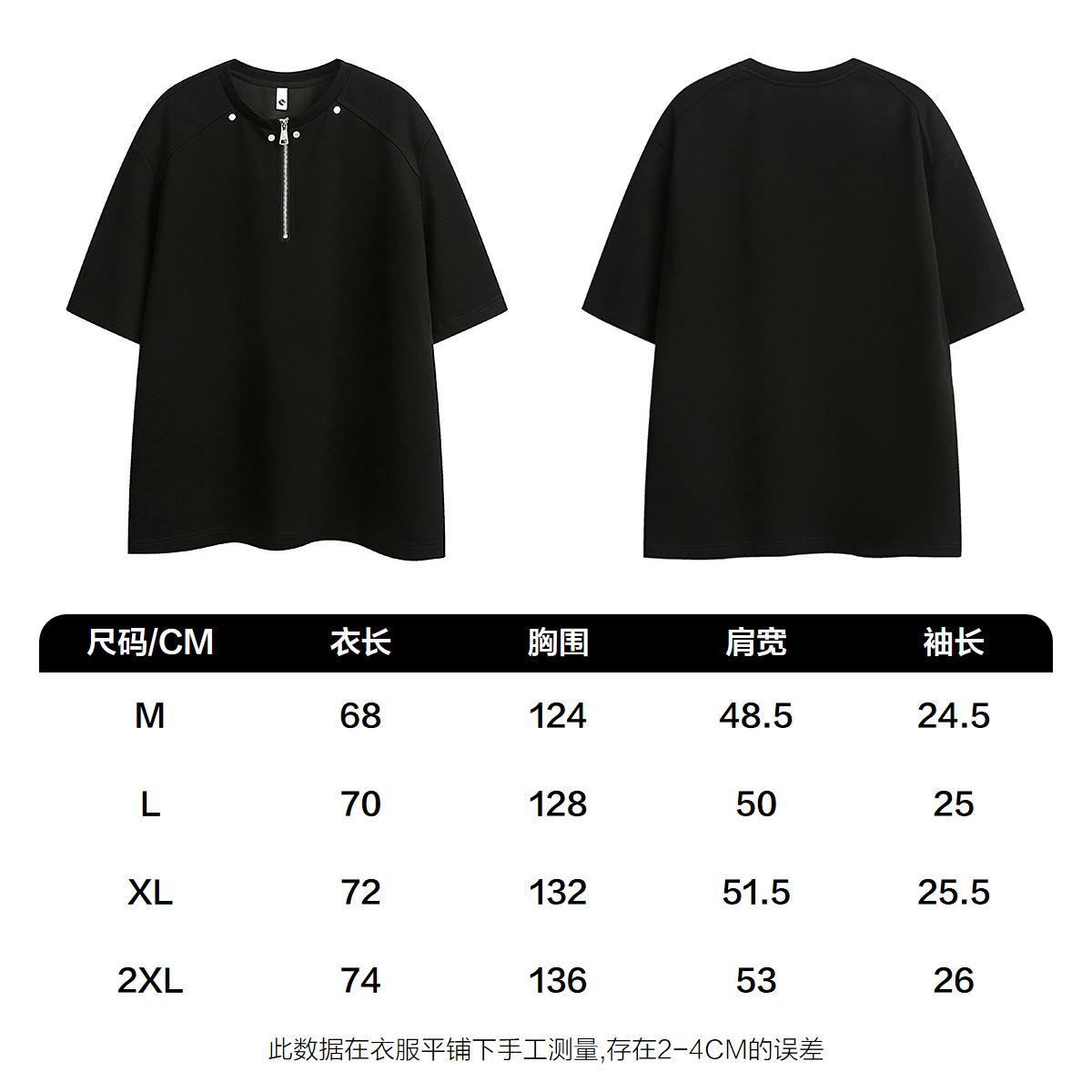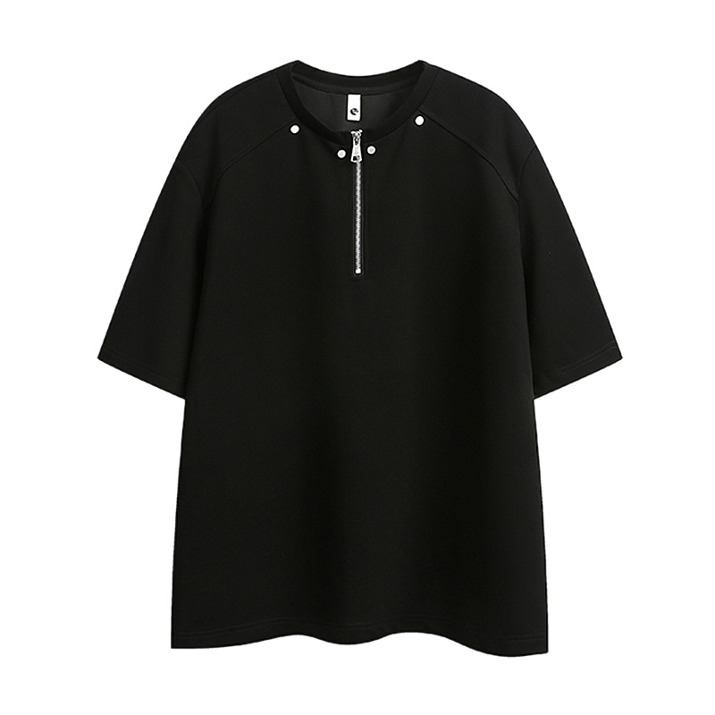 NOONOZ短袖男欧美高街半拉链铆钉T恤夏季美式半袖设计感潮牌半袖