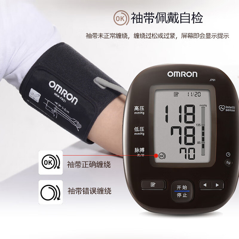 【自营】欧姆龙血压计J751日本原装进口家用蓝牙APP测量仪医用级
