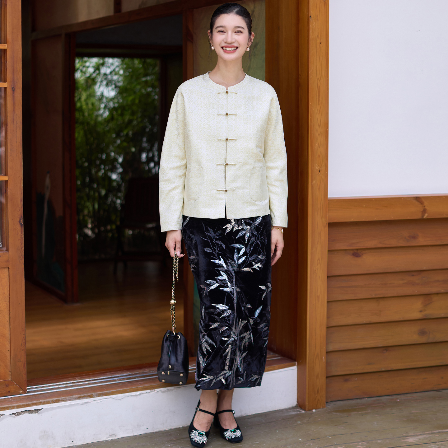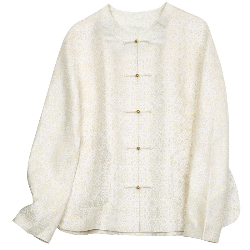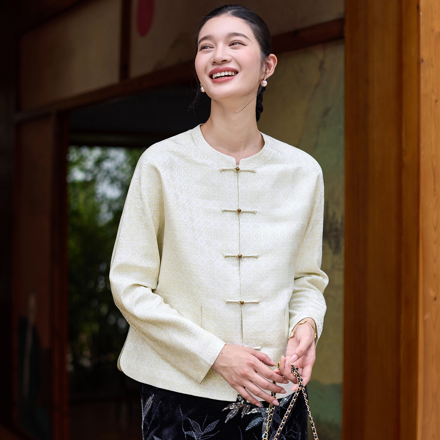 菲伊唐秋真丝宋锦提花对襟女上衣
