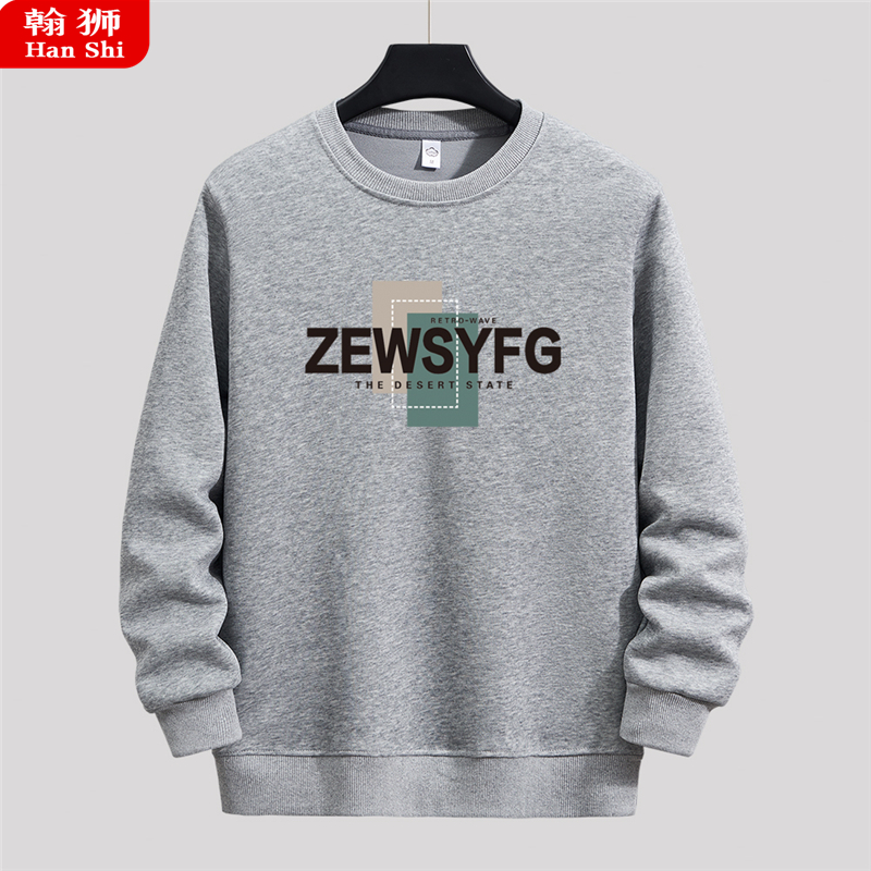 潮牌HANSHI春秋卫衣男圆领薄款青少年纯棉长袖t恤打底衫宽松上衣