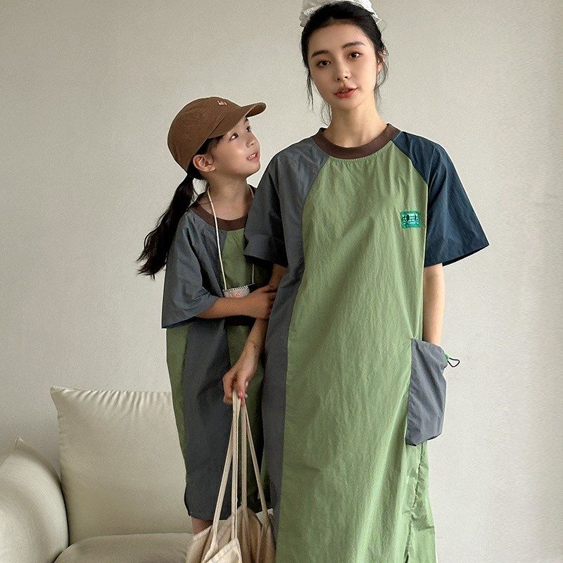 韩国亲子装高定2025夏季男童套装拼接休闲户外家庭装母女装连衣裙