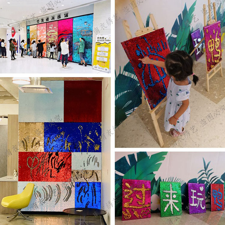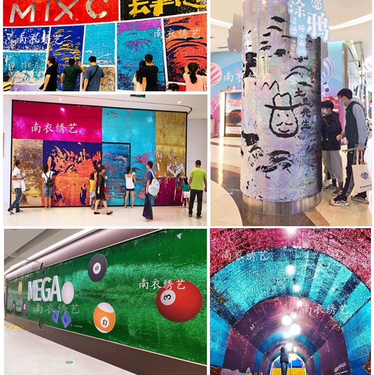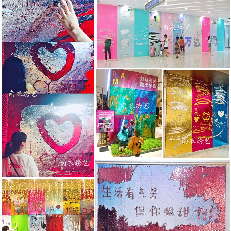 正反双面两色可翻鱼鳞珠亮片布料涂鸦网红墙背景手工服装创意高端