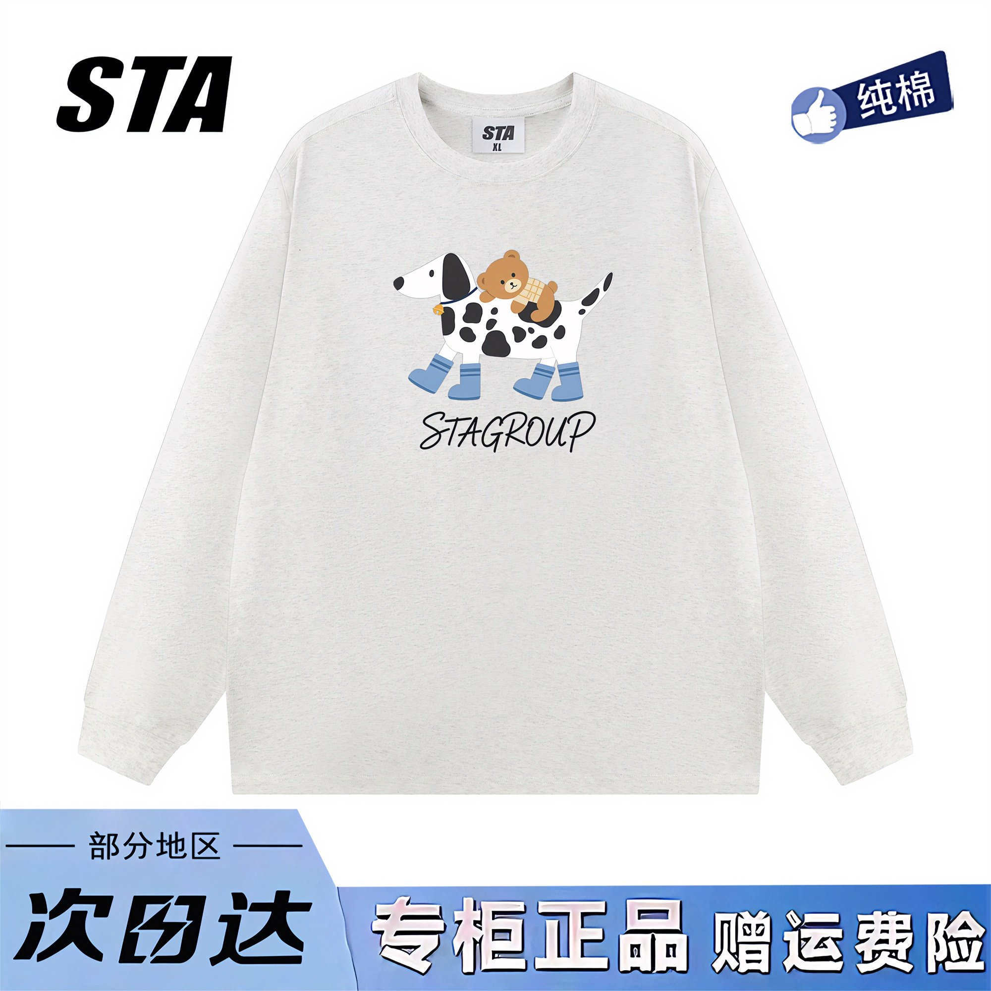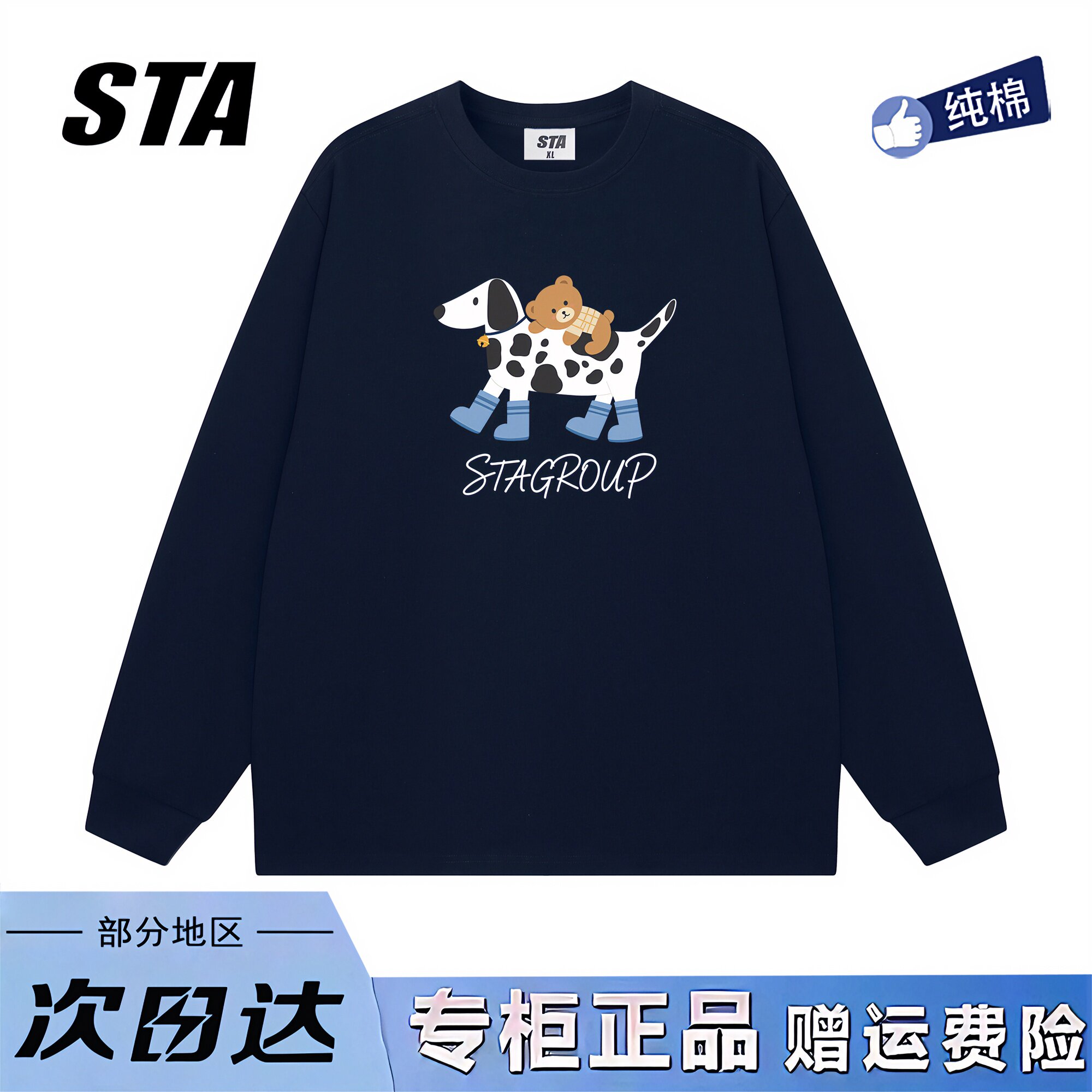 STA旗舰店美式潮牌小众设计感长袖男女重磅纯棉宽松显瘦黑色卫衣