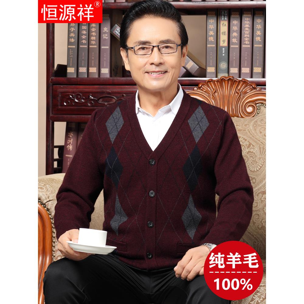 恒源祥爷爷羊毛衫男宽松老年爸爸装开胸毛线衣父亲毛衣秋冬外套男