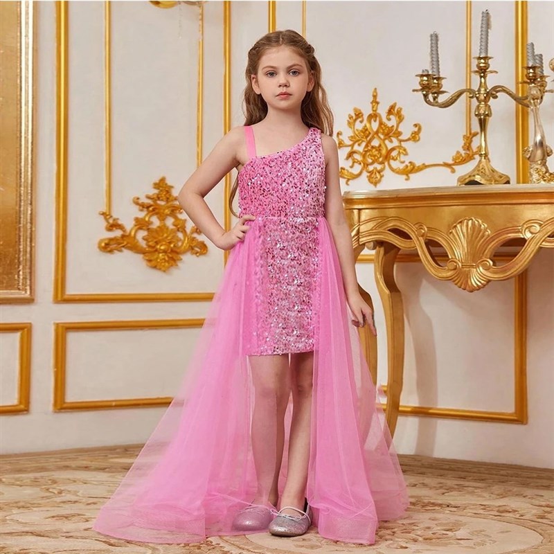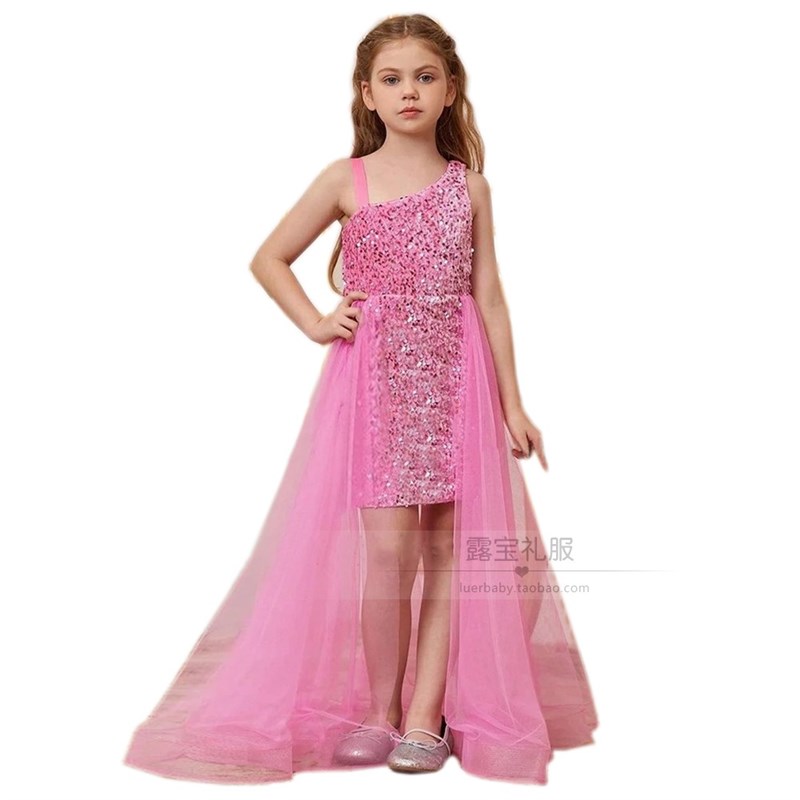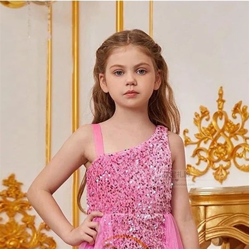 2024新款女童钢琴演出服洋气粉色高端生日公主裙模特婚礼花童礼服